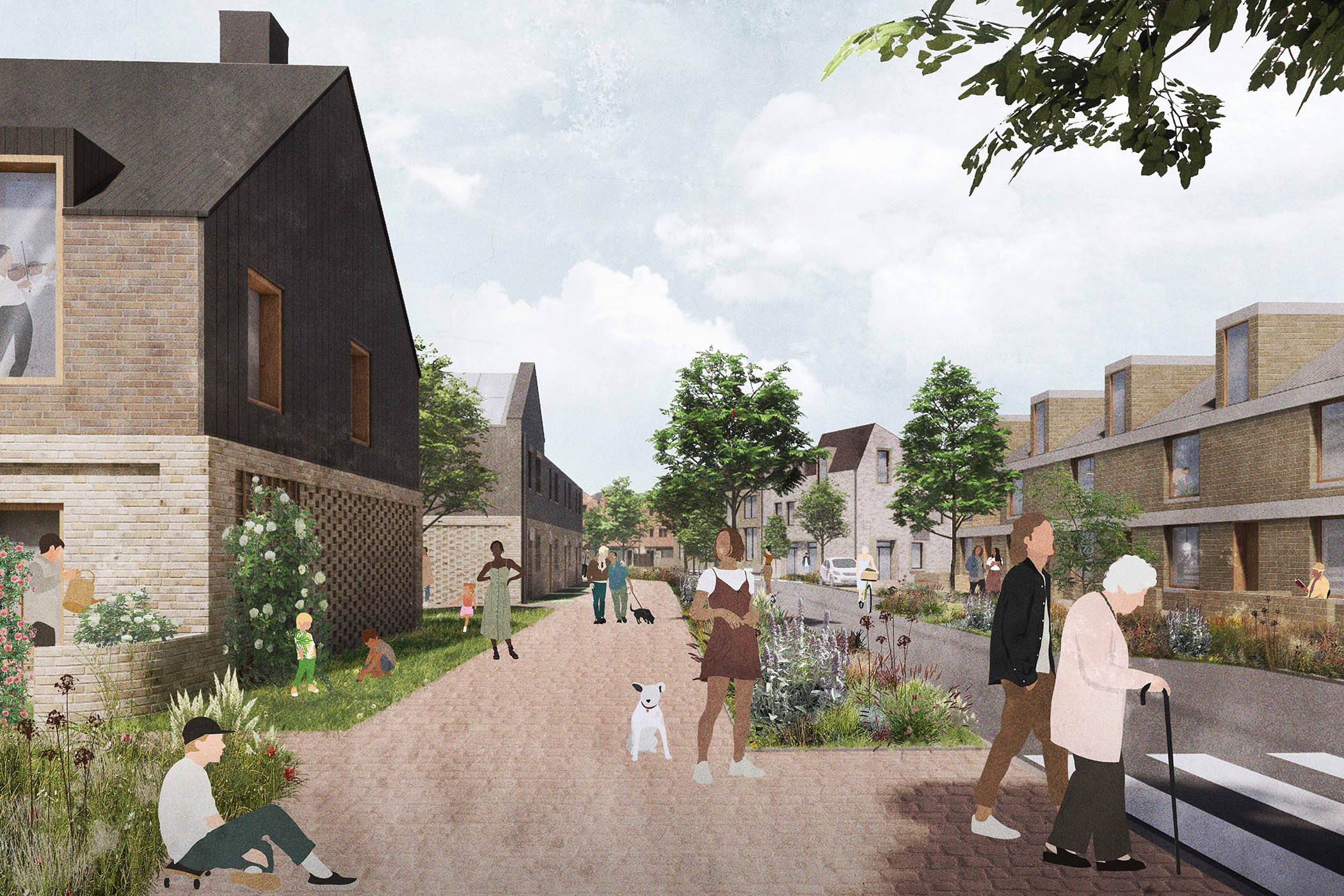 The development’s masterplan is by the architects Haworth Tompkins (who, as well as their expertise in theatres, have a line in housing), working with the landscape architects Periscope and a group of other practices. It promises all the good things, and does so by addressing the greatest obstacle to achieving well-made communities: the need to make room for cars and refuse vehicles, which usually smothers the shared spaces of residential estates with expanses of inhospitable tarmac.
