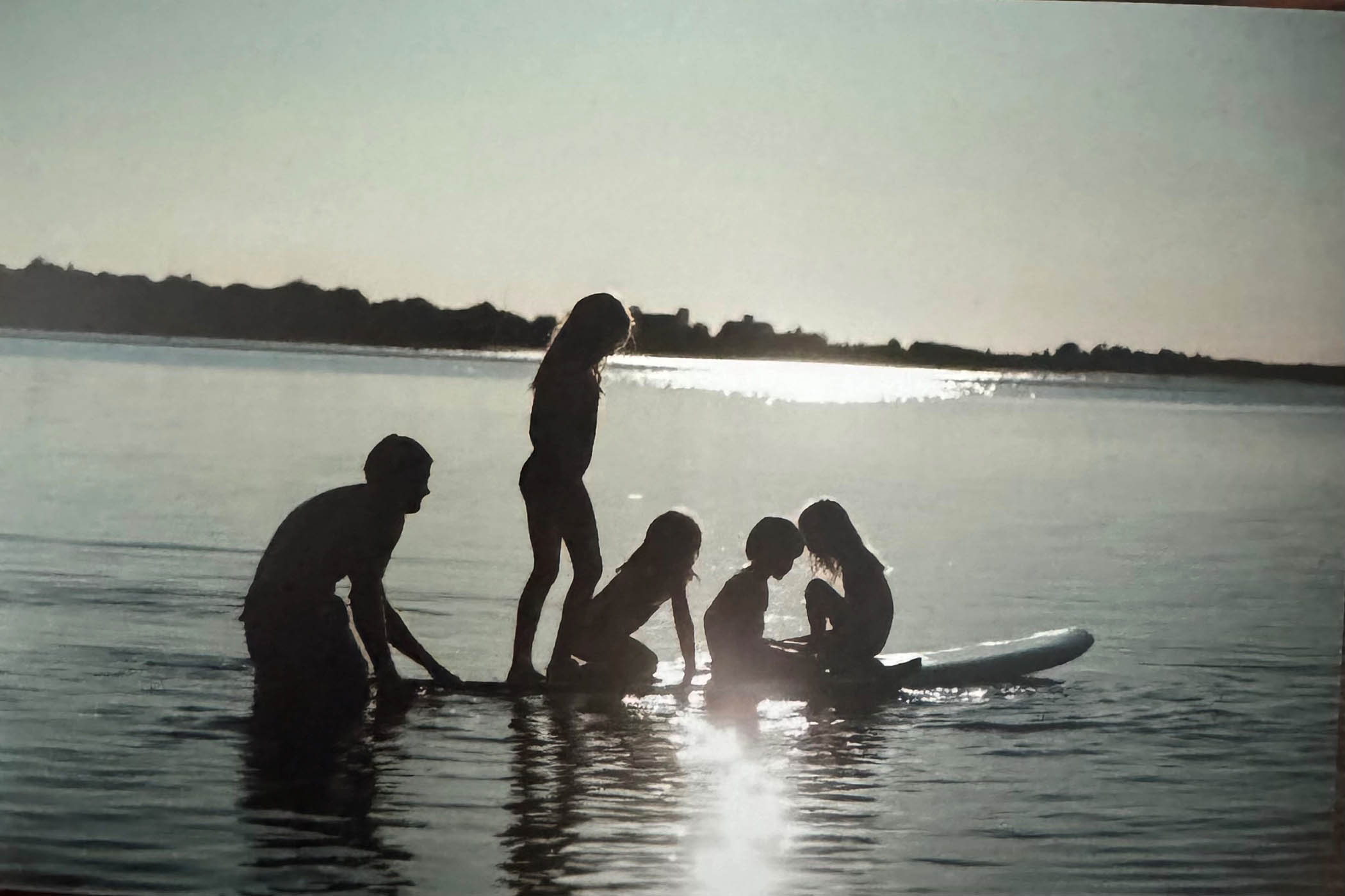 Photograph by Tara Wilson: Belle Burden's husband James, left, their daughter Evie, far right, and friends on Lake Tashmoo, Martha's Vineyard, 2010