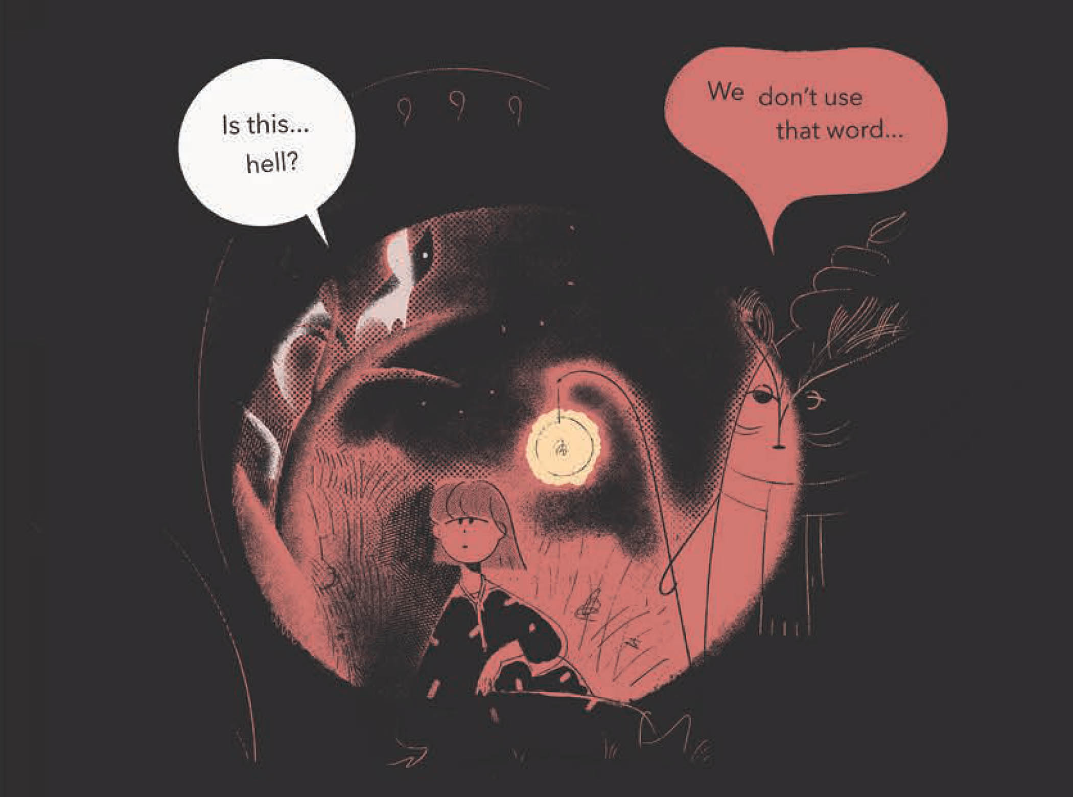 Beneath the scrawly surface of Muradov’s artwork, there is meticulous care and a painterly eye, borrowing from Japanese manga as much as European modernism. Each time I revisited the book, more salient details emerged: the neckwear that distinguishes the woman from her ghost and reveals a terrible secret; the deployment of red in the living world that is perhaps less arbitrary than it seems; the recurring crisscross motif that resembles the squares of a copybook showing through.