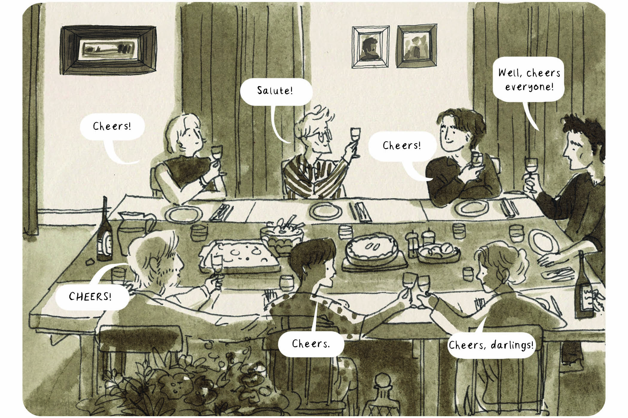 Stewart renders all of this in expressive sepia-toned panels that occasionally burst into colour, in glorious two-page spreads that made me gasp a little whenever I encountered one. But, like Stewart’s previous book Alison, this is not a straightforward graphic novel, punctuated as it is by chunks of prose that can run for a page or more. In an interview, Stewart has described these hybrid works as “comics for people who are still testing the waters”. The format is surprisingly effective – the panels provide immediacy and nuance while the text brings explanatory power that deepens rather than reiterates what’s going on in the illustrations.