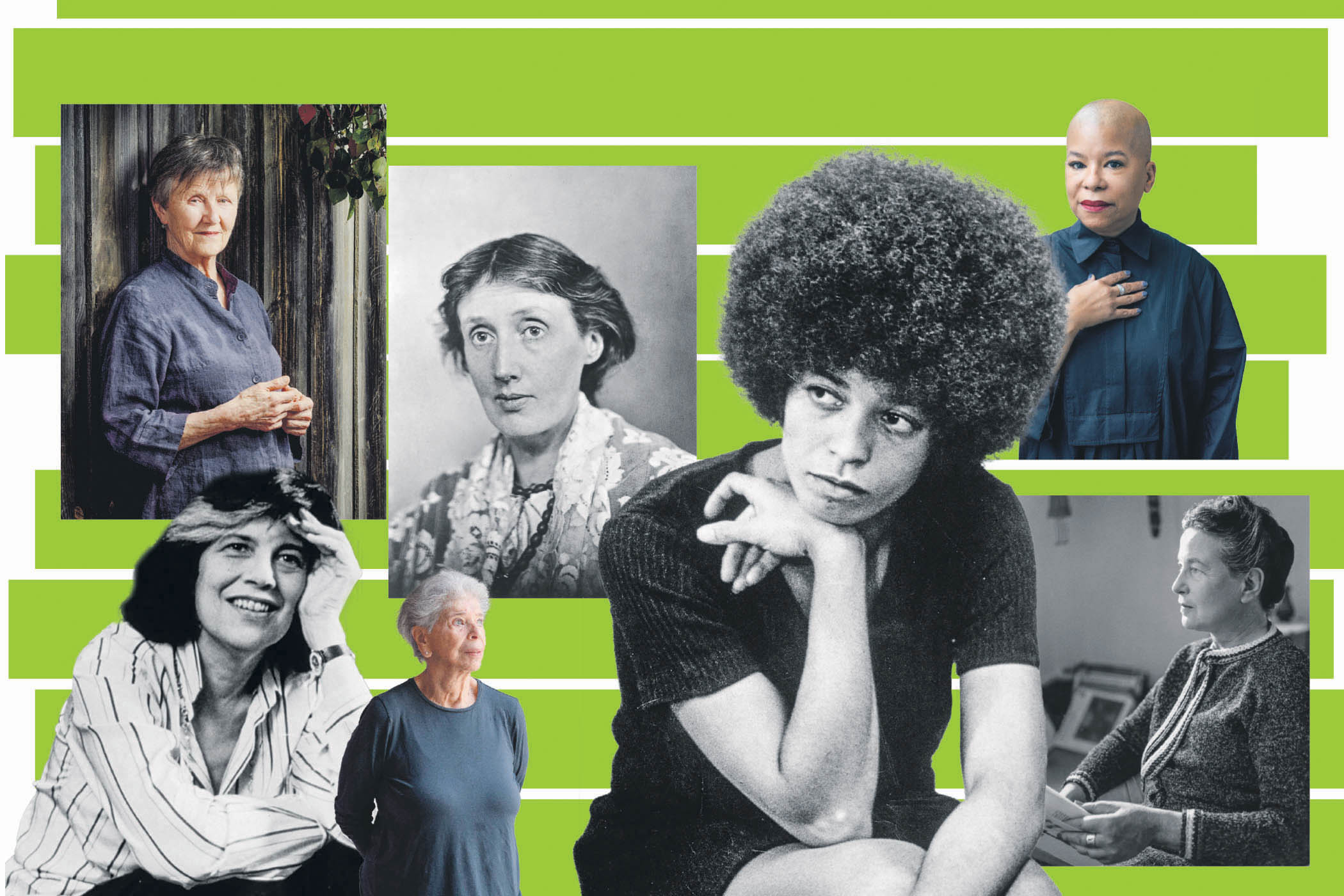 Main picture (clockwise from top left): Helen Garner, Virginia Woolf, Angela Davis, Christina Sharpe, Simone de Beauvoir, Vivian Gornick and Susan Sontag.