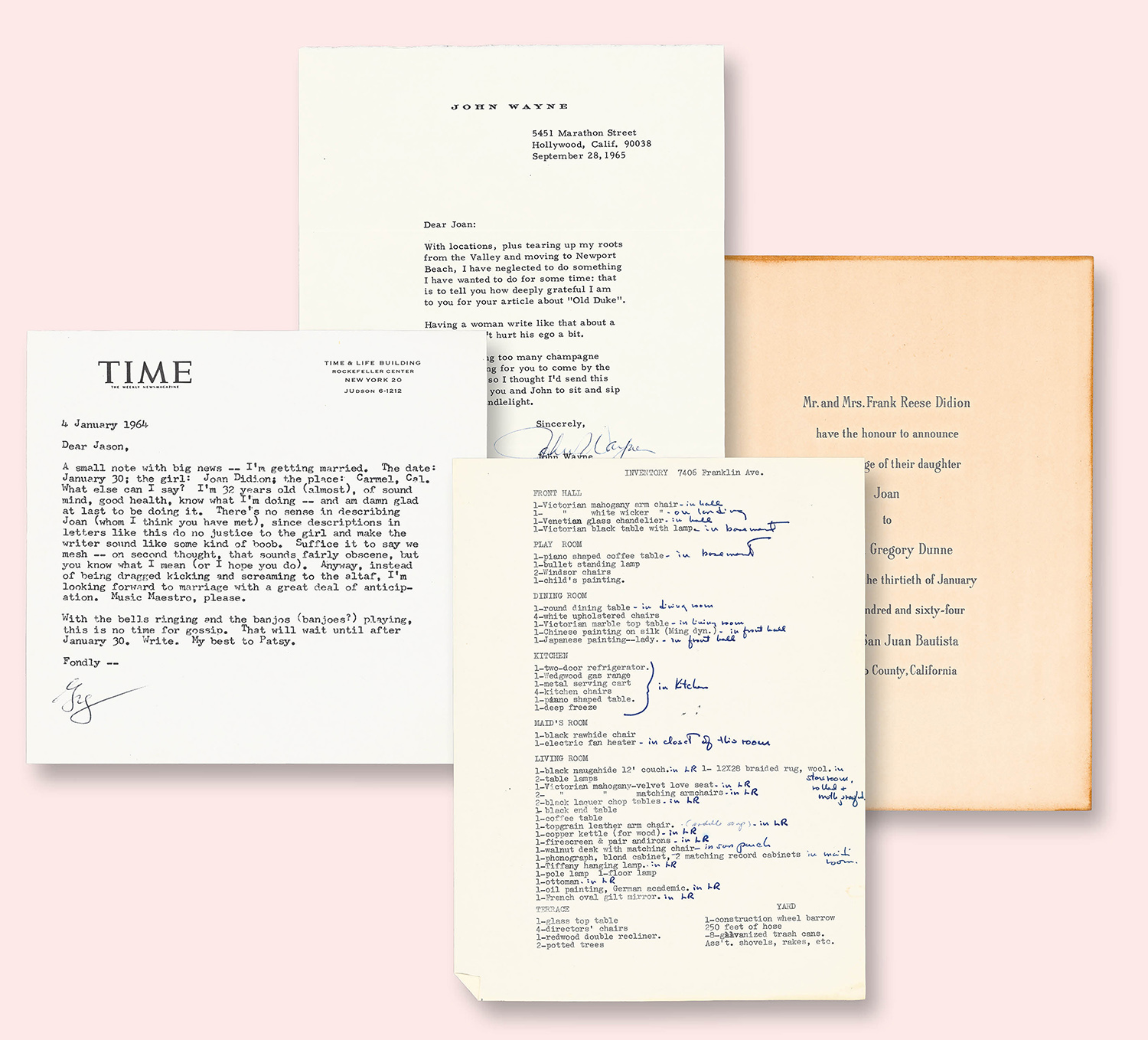 The second decision made about Didion’s possessions was to sell her papers, inseparable from those of her husband and frequent collaborator John Gregory Dunne, to the New York public library.