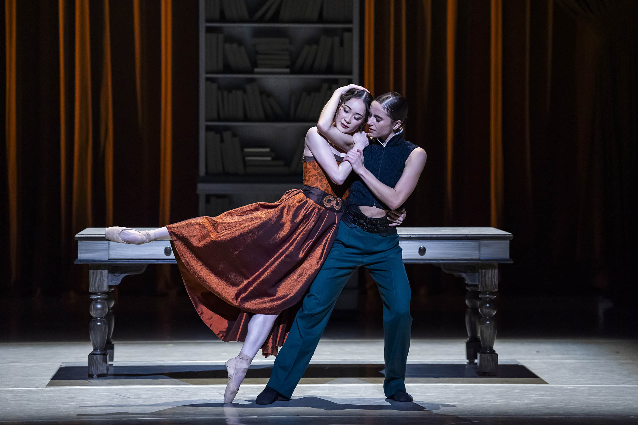 In a tender duet with her first great love Mariana (Saeka Shirai), she melts sexily into her lover’s back, shimmying around her body. When she meets Ann Walker, who becomes her wife, they flirt confidently, stepping out side by side, bathed in sensuous golden light. Lopez Ochoa constantly finds ways of letting two women dance together, creating lifts from the waist and leaning arabesques. These softer steps of love are contrasted with the baroque formality of Mariana’s partnering by her husband (Jackson Dwyer) or the fierce angles and sharp jumps of the men who menace Lister’s happiness, led by George Liang’s lowering mine owner.