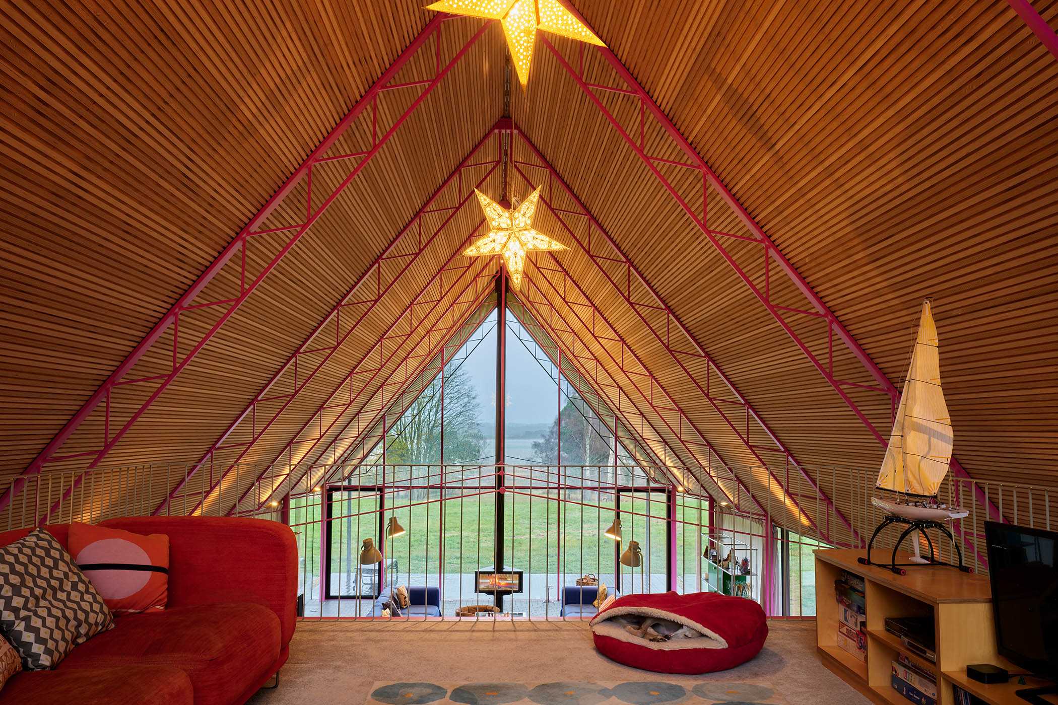 From afar, it might look like a typical boxy Norwegian cabin, but the sauna room is actually cylindrical, with a floor-to-ceiling window that creates the illusion of being outside while you toast away beside the wood-fired burner. “The curvature of the sauna makes it unique,” Francis Brekke, a partner at architecture practice Oslo Works, told me over coffee in his high-ceilinged studio. “But it’s the big window and the closeness to the fjord that make it breathtaking.”