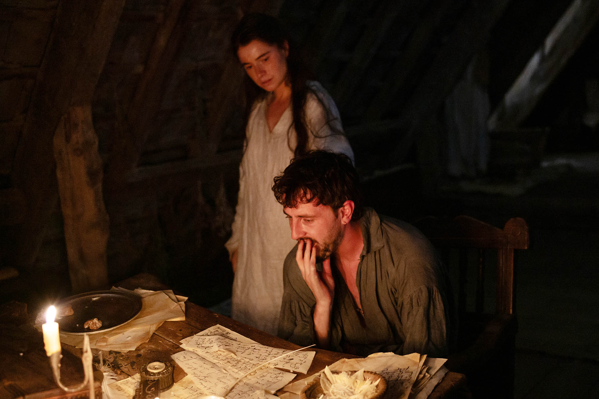 Our first glimpse of the character gives a sense of the wild otherness that makes her a figure of suspicion in her local community. She’s asleep, cradled by the roots of a tree, curled up in a foetal position in the womb of the woodland. She is, according to gossip, the child of a forest witch. Will is beguiled by her: she has the look of a tree sprite, with twigs in her hair, a hawk on her arm and dirt under her fingernails. And she sees something in him that, as yet, nobody else does: Agnes’s steady, penetrating gaze reads his every last secret and story. Always a thrillingly open and uninhibited screen presence, Buckley is tremendous here. Each caressing shot of her face invites us into an interior landscape.