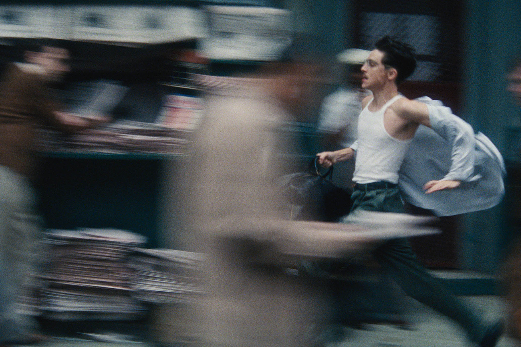 Chalamet drives the picture with a fizzing, hyperactive performance that’s in constant motion. Even in moments of comparative stillness, the lens in his face as Marty calculates his next move, Chalamet’s expression flickers; his lip, with its light dusting of a post-adolescent moustache, twitches into a quizzical sneer.