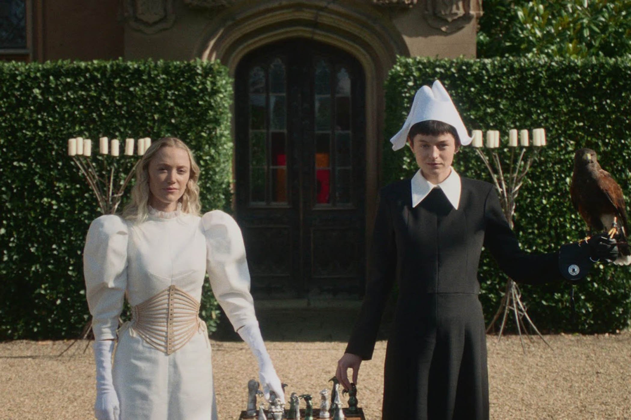 Neglected wife Cherry (Maika Monroe) is abandoned by her husband in the company of his charming best friend Manfred (Nicholas Galitzine). What Cherry doesn’t realise is that the two men have made a wager – her fidelity and her future are at stake. What the men don’t realise is that Cherry’s maid, Hero (Emma Corrin), is smarter than all of them put together and, night after night, weaves stories of rebel women to distract Manfred from his nefarious intentions.