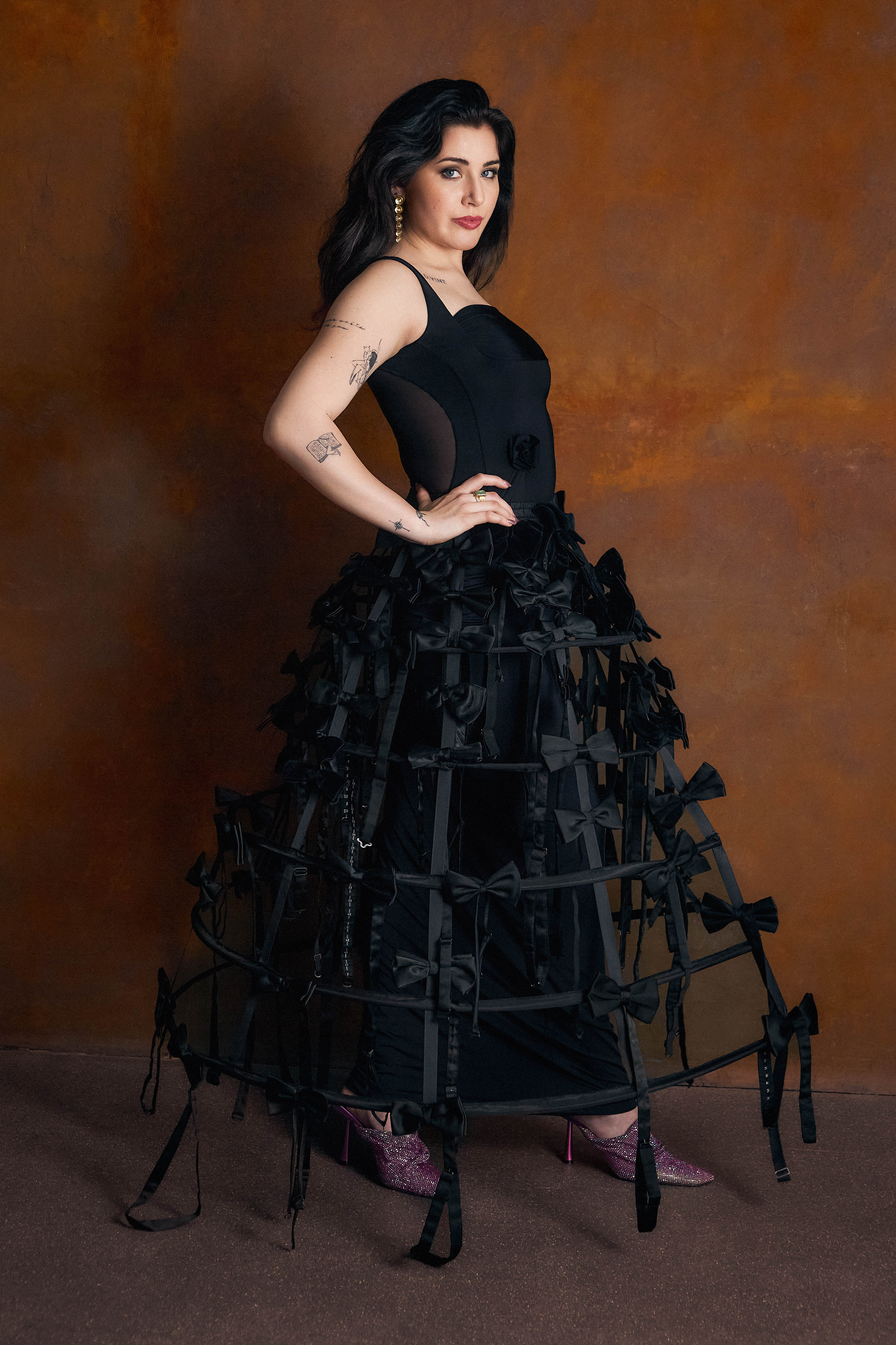 Top picture: Lauren Roberts wears dress by Maygel Coronel at Koibird; bowtie skirt by Patrick McDowell; earrings by 886 by the Royal Mint; cuff by Misho Designs; eye ring by Ece London; double bond ring by L’Atelier Nawbar; and mules by Bendetta Bruzziches.