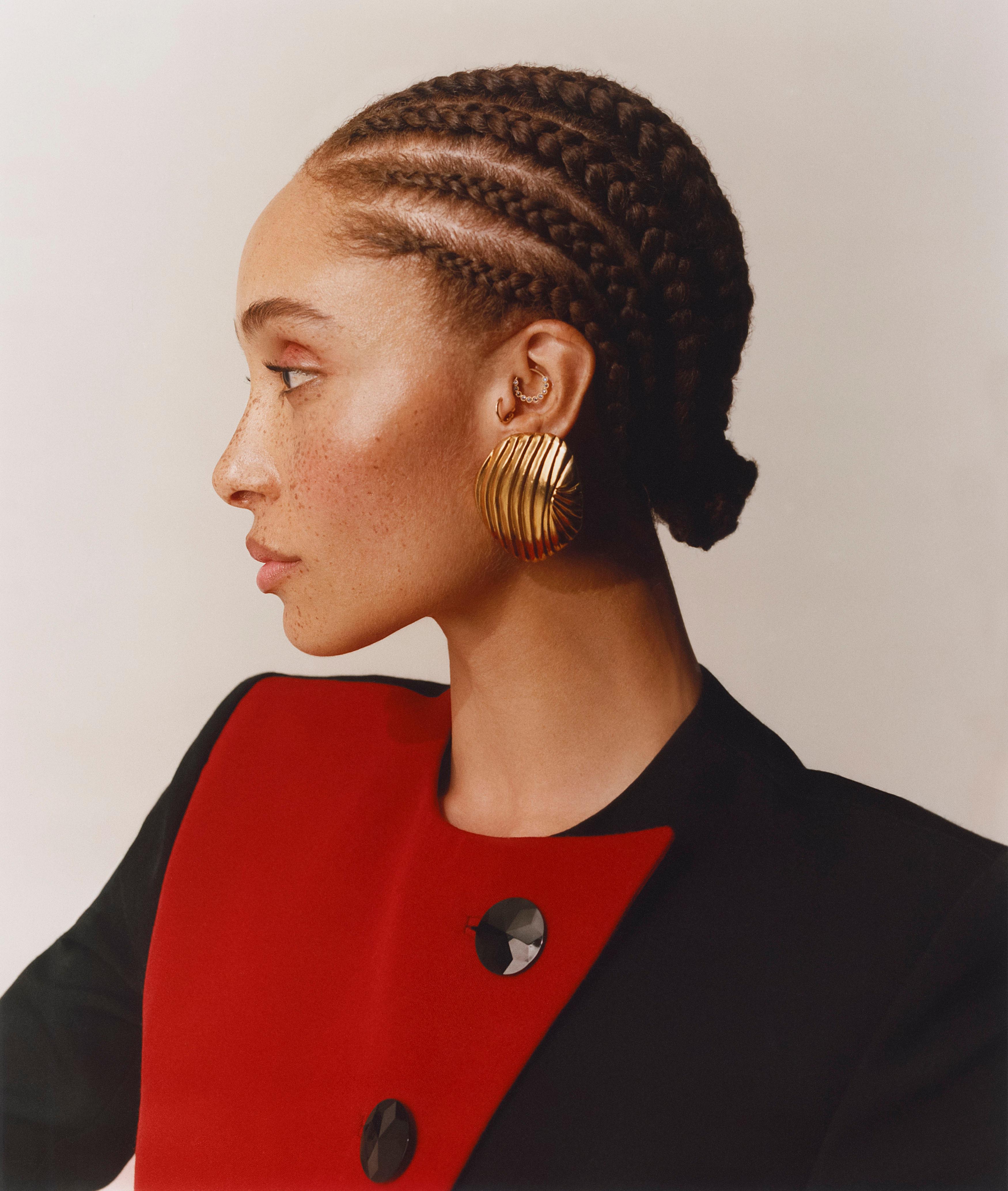 The Veil is Aboah’s first time running a brand, and she’s been required to plunge headfirst into a world of spreadsheets, budgets and meetings with prospective investors. And then there’s the glamorous stuff, too. A couple of weekends ago she hosted a dinner at the Broadwick hotel in Soho with a gaggle of London’s coolest, most stylish women: the actor Yara Shahidi, the stylist Ch’lita Collins, the TikTok presenter Lea Ogunlami. “I actually hate most of those dinners,” she says. “Most people do.” And yet she persisted. “I know what Georgie and I have poured into the Veil, and I know what we want it to be and who we want to wear it. And most of the people there, I just, like, fuck with them on such a major level.” She considers these women to be true originals. “It’s exciting when I spot people who are just doing it in their own way,” she says. “They’re not bothered by the fashion echo chamber.”