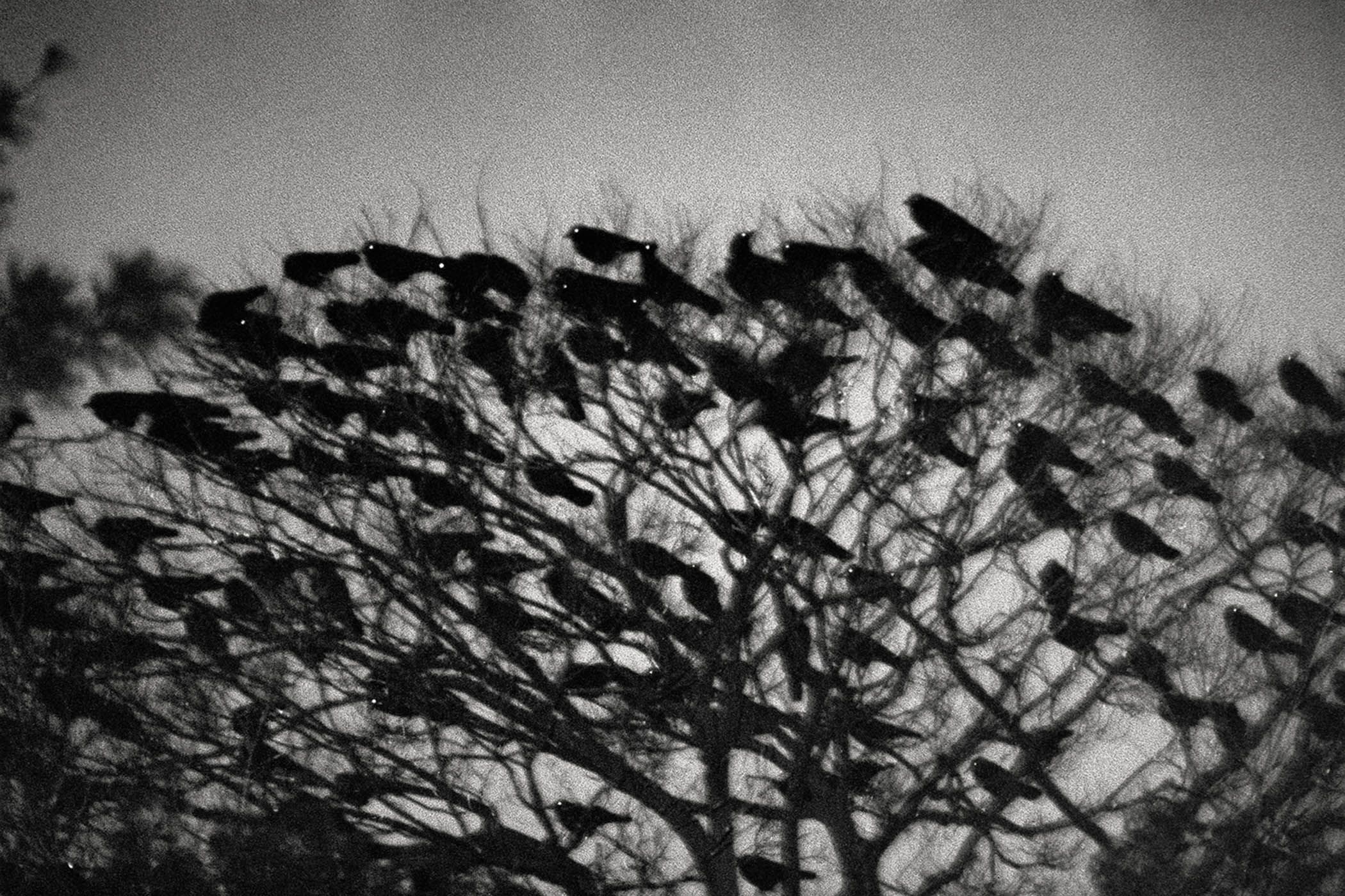 I picked up this photography book at a friend’s house and didn’t put it down for half an hour. Masahisa Fukase became obsessed with photographing ravens – on telephone wires, snow fields, against grey skies. They’re always black and white, very dark, almost abstract. It feels like a man pouring his sadness into a single image over and over, till it becomes something bigger – an allegory for loss, for life in postwar Japan, for what happens when you let an obsession consume you. It carries you to the edge of yourself.