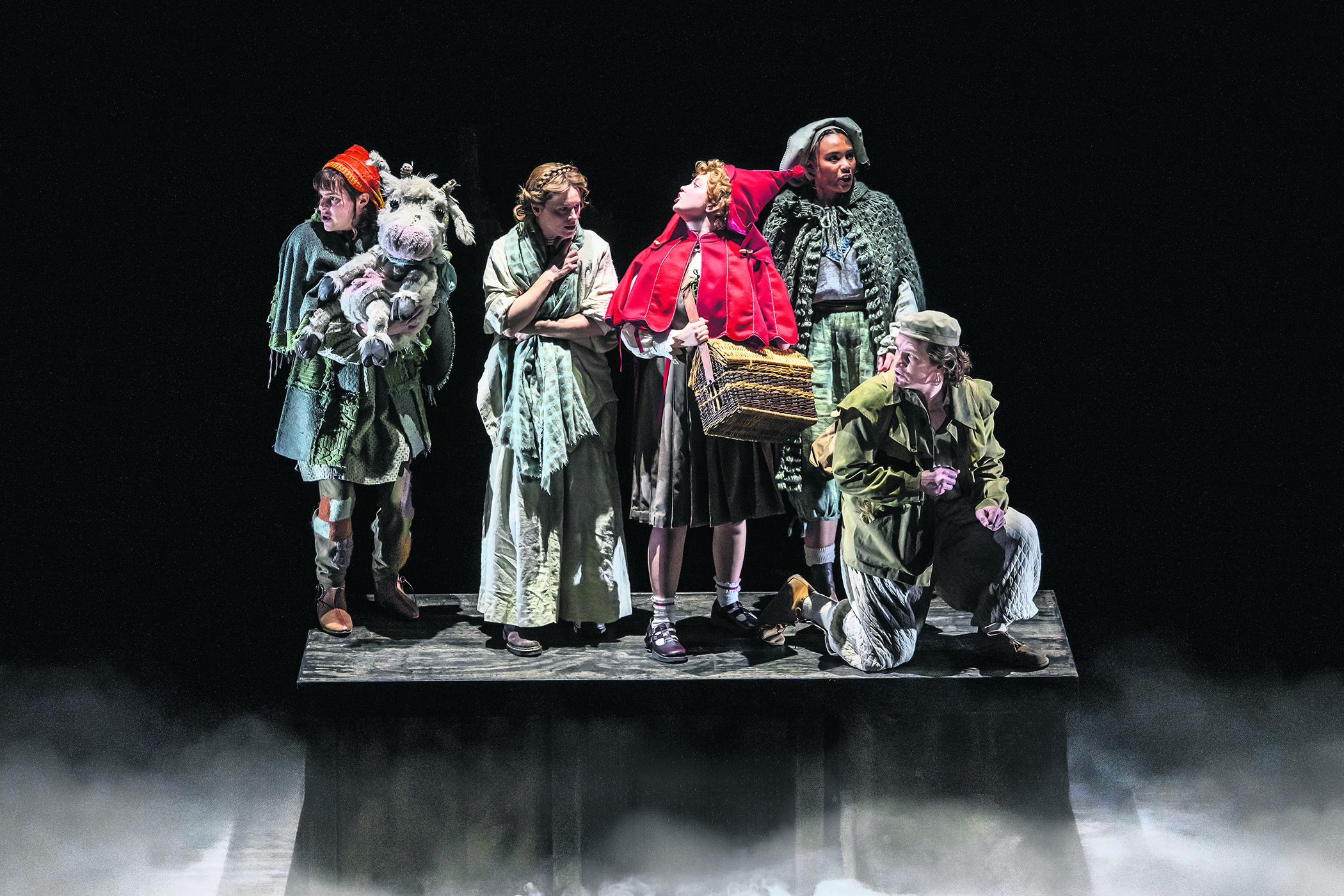He has the ideal designer in Tom Scutt, most celebrated for Cabaret though at his most original in a bare-board maritime design for Carousel and an extraordinary grass-covered shtetl for Fein’s Fiddler on the Roof. Scutt goes to the heart of things. His wood prickles with depths and possibilities, allowing a witch or a cow to vanish and reappear. Roland Horvath’s video design helps to make it an unstable place of movement. Aideen Malone’s lighting coats the vegetation in secrecy and creates a remarkable moment towards the end of the evening when the Witch, who turns out not to be such a bad egg (“Witches can be right”), takes off with her daughter, Rapunzel. The two exit the scene walking on beams of light as if they were treading the radiant way.