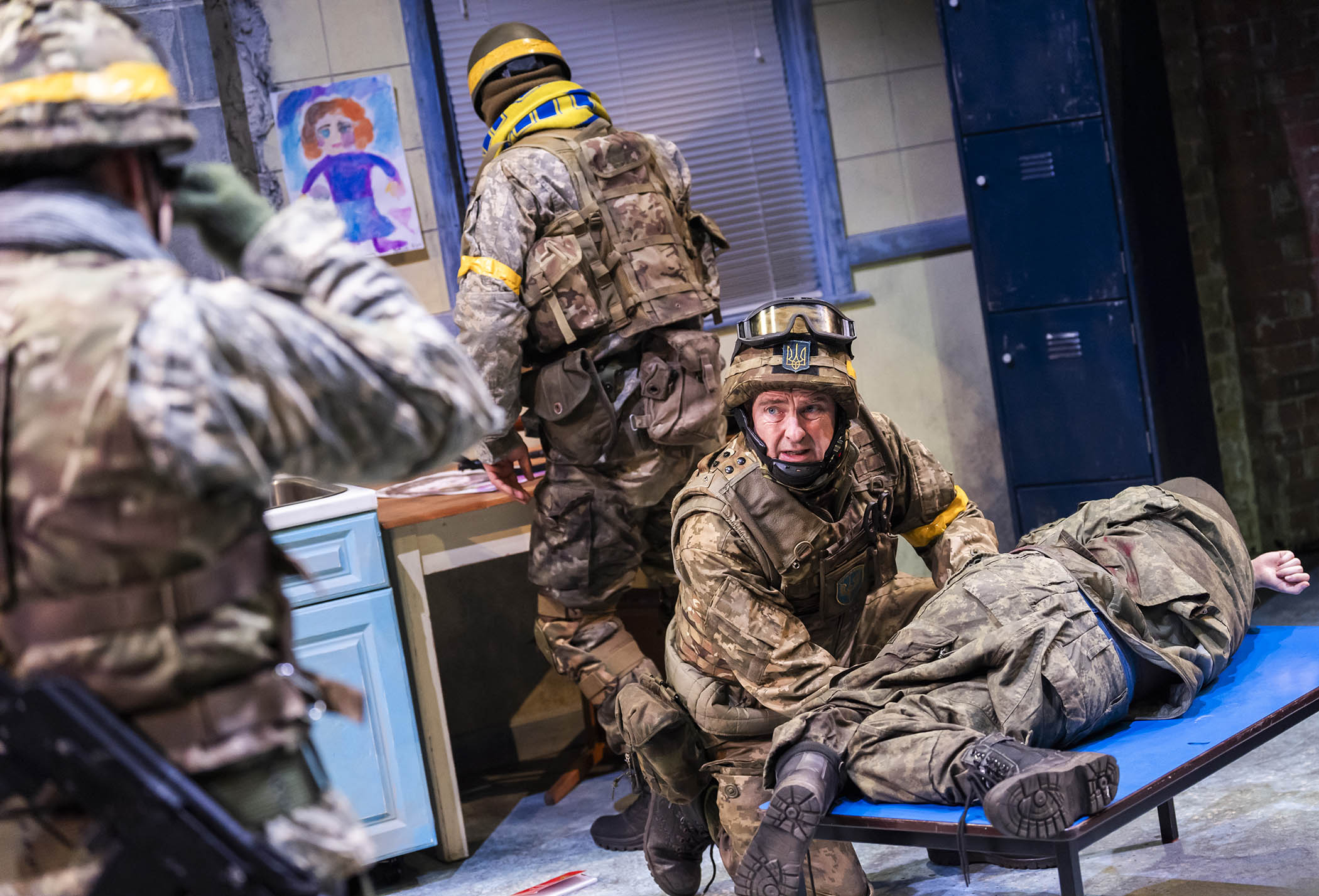 David Greig brings the frontline to a primary school classroom in which three Ukrainian infantrymen must decide what to do with the body of a North Korean soldier, lifeless but alive enough in the eyes of the Geneva conventions.