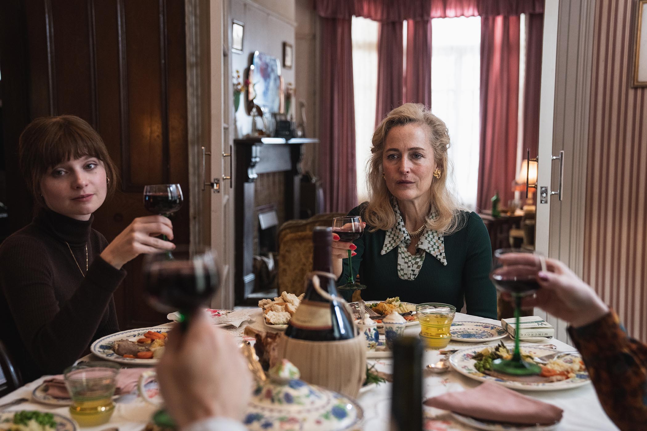 A love story buds in the pervading unease. Lola Petticrew (who portrayed IRA volunteer Dolours Price in the Troubles-era drama series Say Nothing) plays twentysomething Cushla, a Catholic schoolteacher. Her widowed alcoholic mother – an abrasive, sometimes witty turn from Gillian Anderson – is a slurring mess of bitterness and hidden gin bottles. At school, one of Cushla’s pupils is from an ostracised Catholic-Protestant family with a father so savagely beaten he’s left a husk.Cushla helps in the pub owned by her brother, Eamonn (Martin McCann), where drunk soldiers paw her. It’s there she meets Michael (Tom Cullen), a Protestant barrister known for defending brutalised Catholics in court.