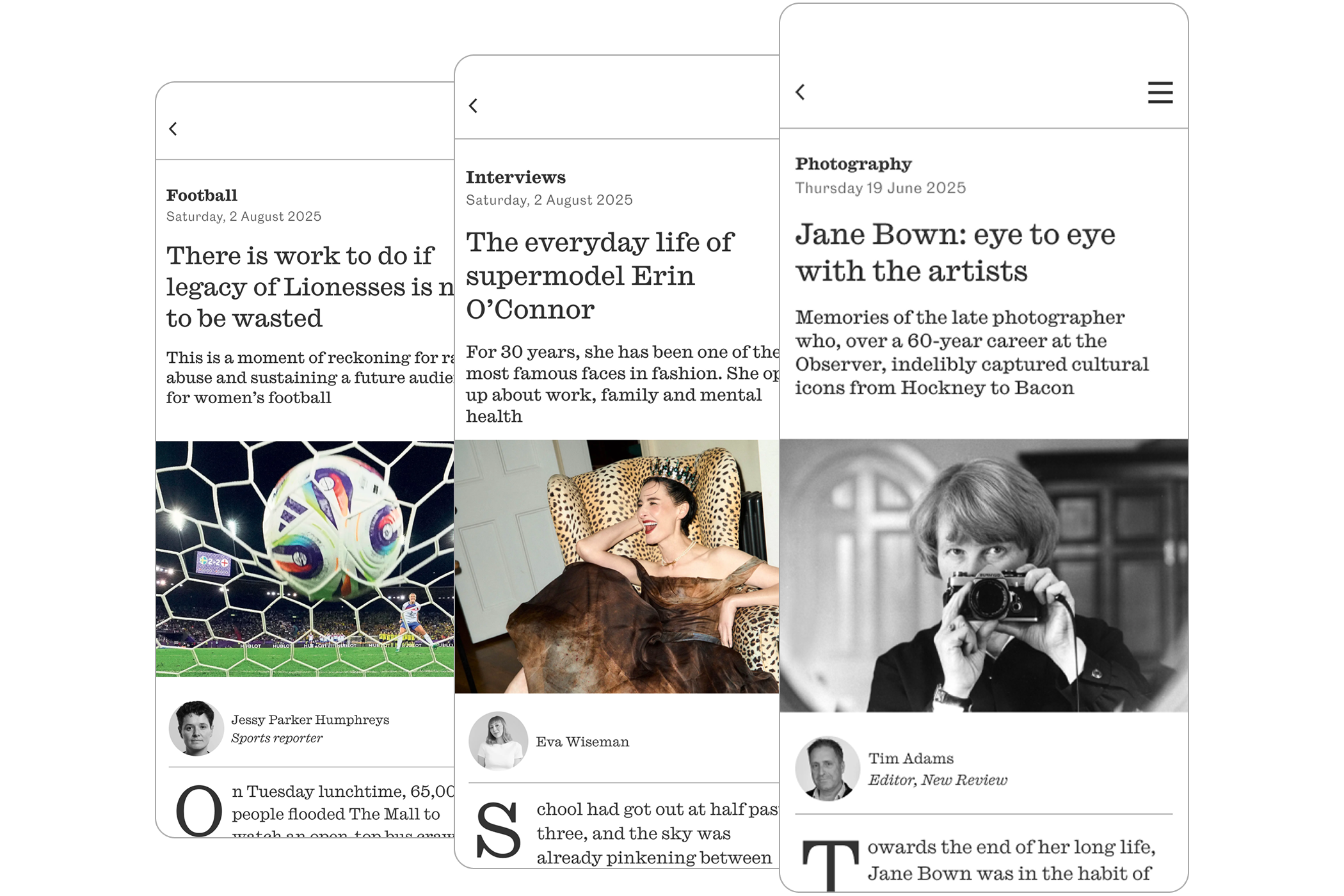 The best of The Observer's journalism, daily. News, investigations, essays, our critics, recipes, Nigel Slater, our columnists – including award-winning podcasts, puzzles and more.