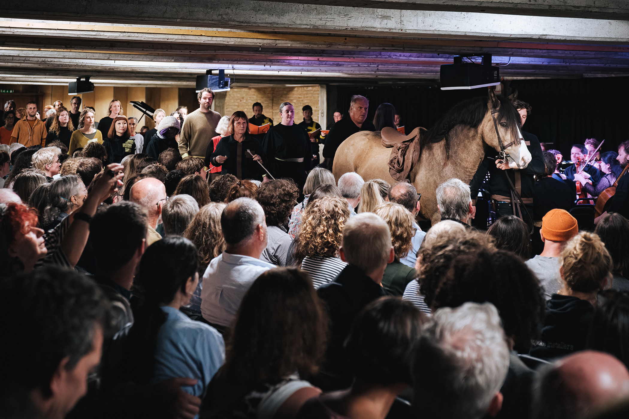 Even the subtitle of Oliver Leith’s new work, Garland, performed at Bold Tendencies, London, is a kind of mini-epic: “A processional work for solo soprano, vocal consort, mixed choir and large ensemble, to a text by Charlie Fox in collaboration with the composer.” If you add in shopping trolleys, hot water bottles, a 6ft-long leather whip and some more common-or-garden orchestral instruments, you grasp the scale. And then there’s the horse of course.