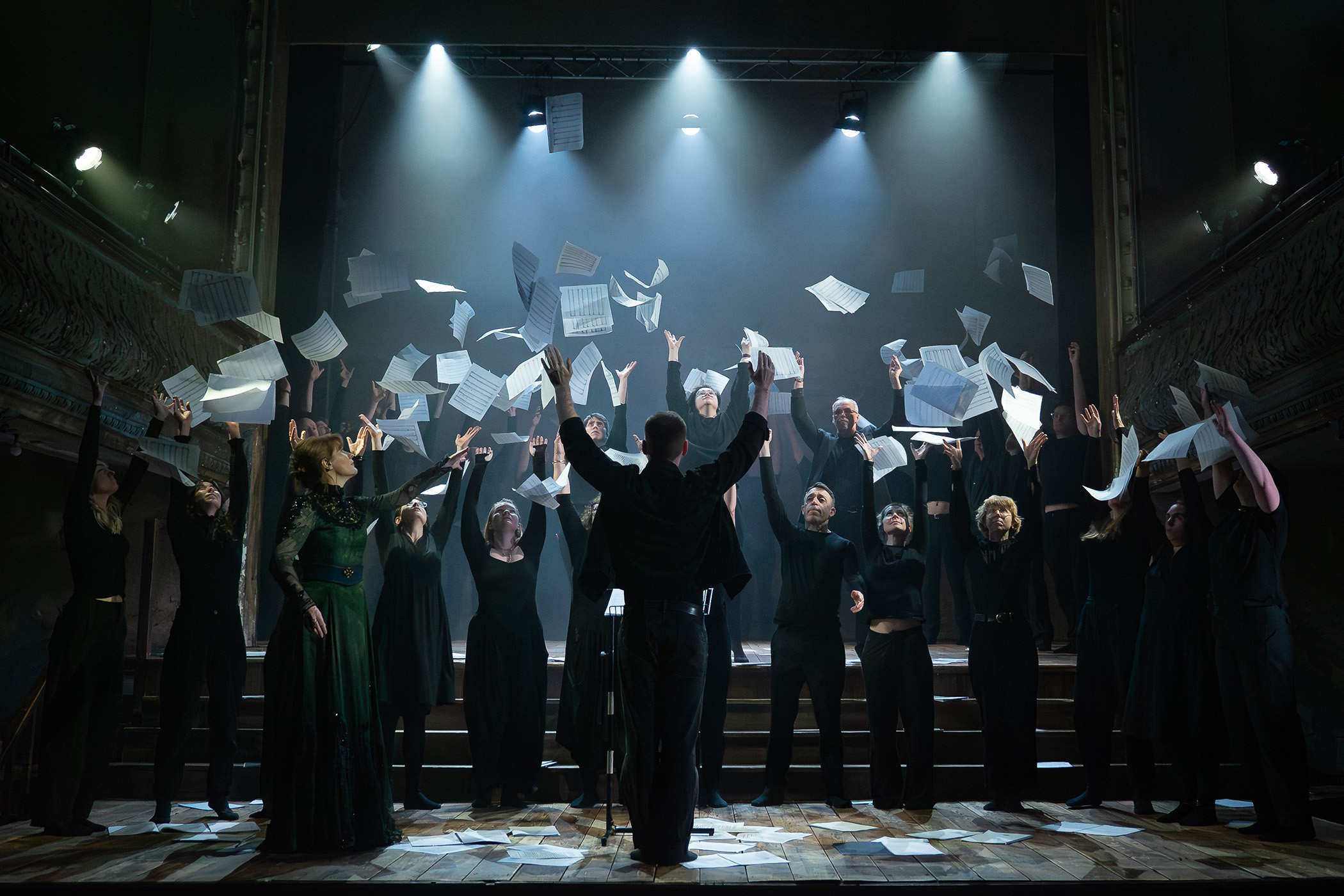 In the interim, Leith’s reputation has snowballed. The score has since been recorded and had a one-off performance in Los Angeles in February 2024. His operatic epic Garland (the one with the horse) premiered in September, and was a highlight of the year. Now the Linbury has acted boldly and brought Last Days back for 16 performances over the holiday season. Leith has tightened it. There are cast changes, but the conductor, Jack Sheen, the players, 12 Ensemble, and the percussion and keyboards of GBSR Duo, are the same. In a house debut, actor Jake Dunn (Renegade Nell) plays Blake the non-singing central character inspired by Cobain who shuffles and mutters in a spiral of lonely torment. Patricia Auchterlonie returns as Superfan, leading an expert cast of freeloaders, housemates, agents, fans. Once again her interaction with a recording of the American indie pop star Caroline Polachek singing a fake opera aria – but what is real? – acts as an emotional touchstone.