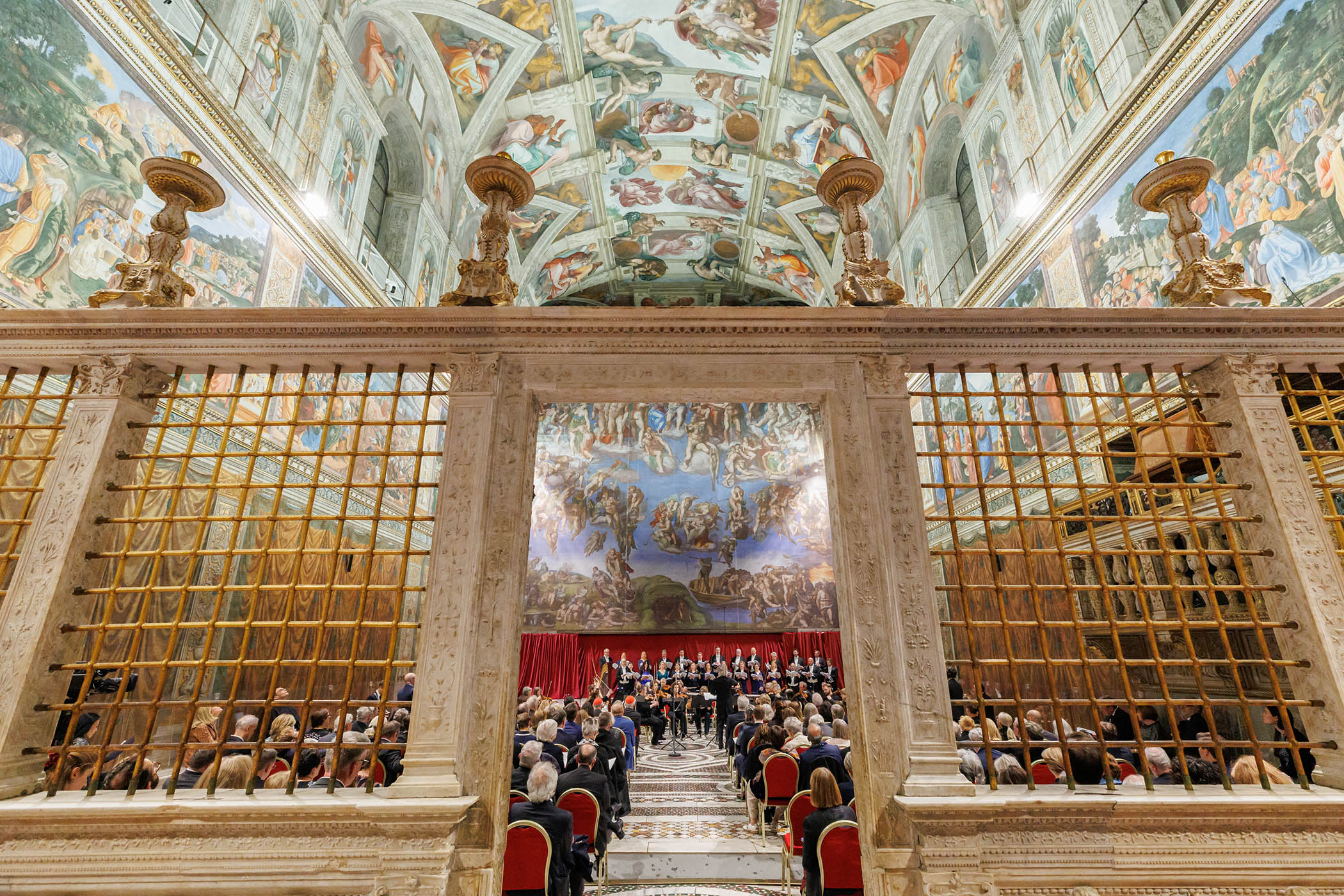 This Roman holy of holies, stark and unadorned on the outside, approached along windowless marble corridors and grand stairways, feels shut off from the world; the mysterious heart of the Vatican. (Though, technically, it is less hidden than it once was, with an estimated 25,000 visitors a day providing about £70m annually for the papal coffers.) What could music add to all the visual tumult?