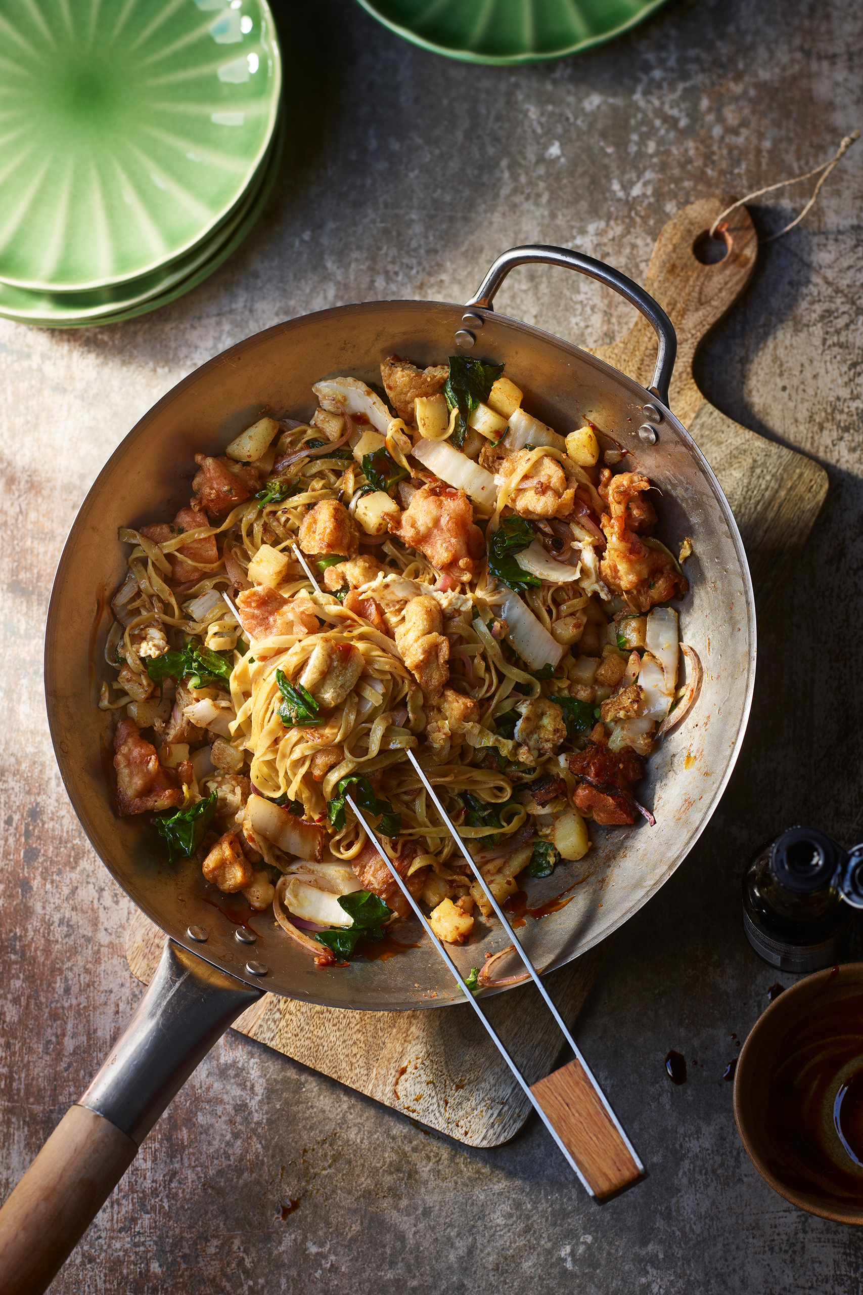 This recipe brings together the best of Indian, Malay and Chinese flavours in one glorious stir-fried noodle dish. My first encounter with it was at a hawker stall in Penang.