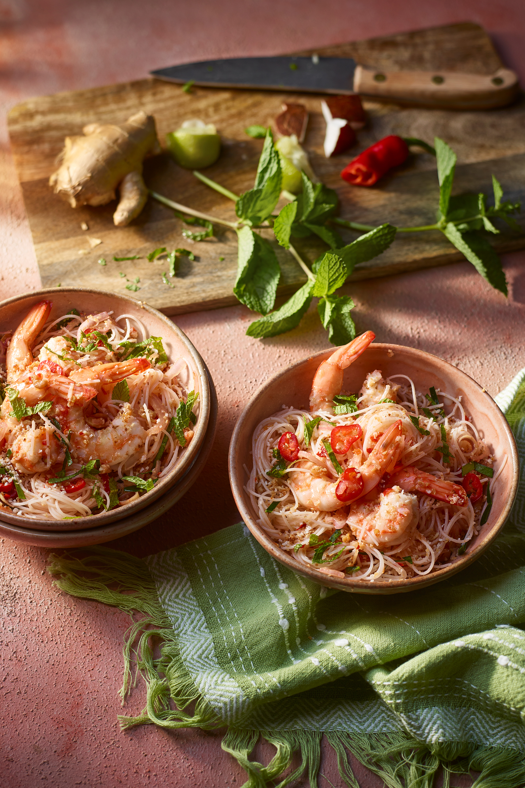 If I could have one thing for lunch for the rest of my life it would most likely be this. This is a take on the best kerabu bee hoon I’ve ever had, at a nyonya restaurant in Penang. It had a beautiful citrusy floral taste I had never encountered before, which turned out to be torch flower; I’ve discovered that a blend of mint and fresh ginger makes a delightful substitute.