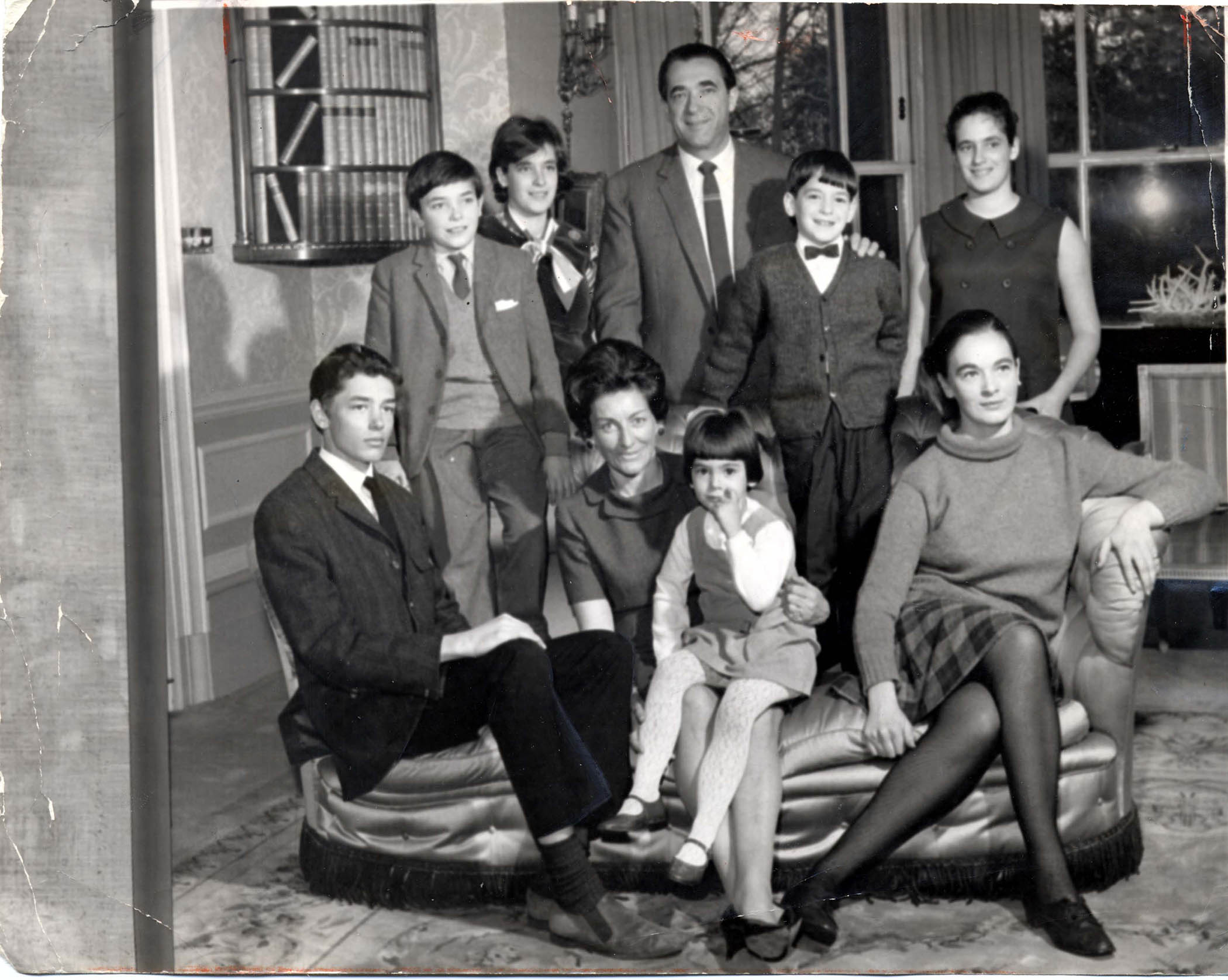 Ghislaine at the Cannes Film Festival in 1987 with her father, Robert, and brother Ian
