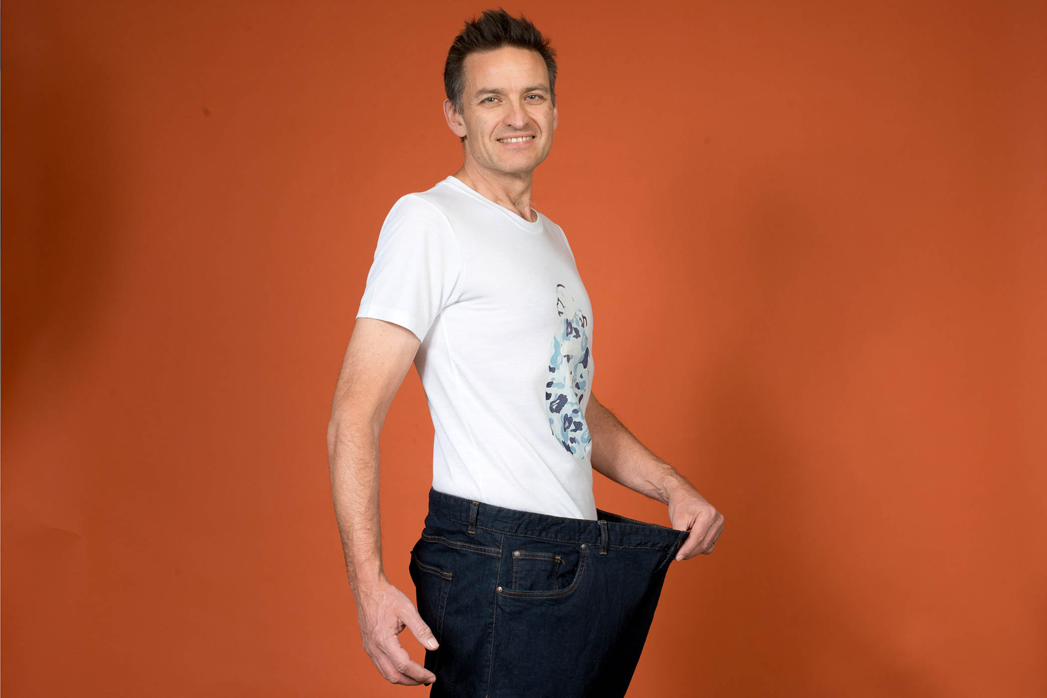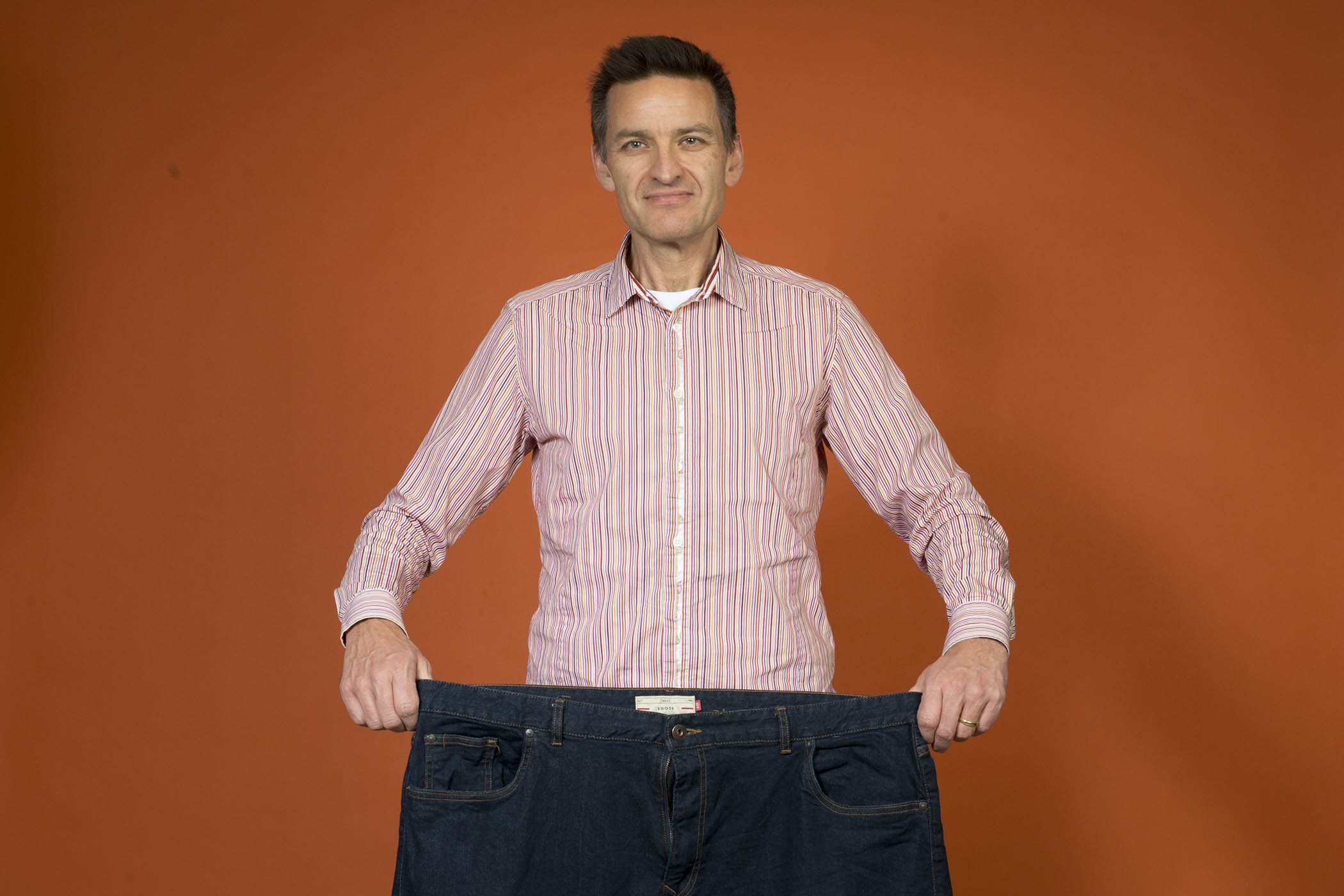 Now I’m 78kg, 12st 3lb, 24 BMI – a healthy weight – in size 30 jeans (Diesel, £5) and size S tops (Paul Smith, £8). Overall, since I started weighing myself every day, I’ve lost nearly 57kg, which is nearly 42% of my body weight. That’s almost 9 stone in British, 125 pounds in American or about one Taylor Swift.