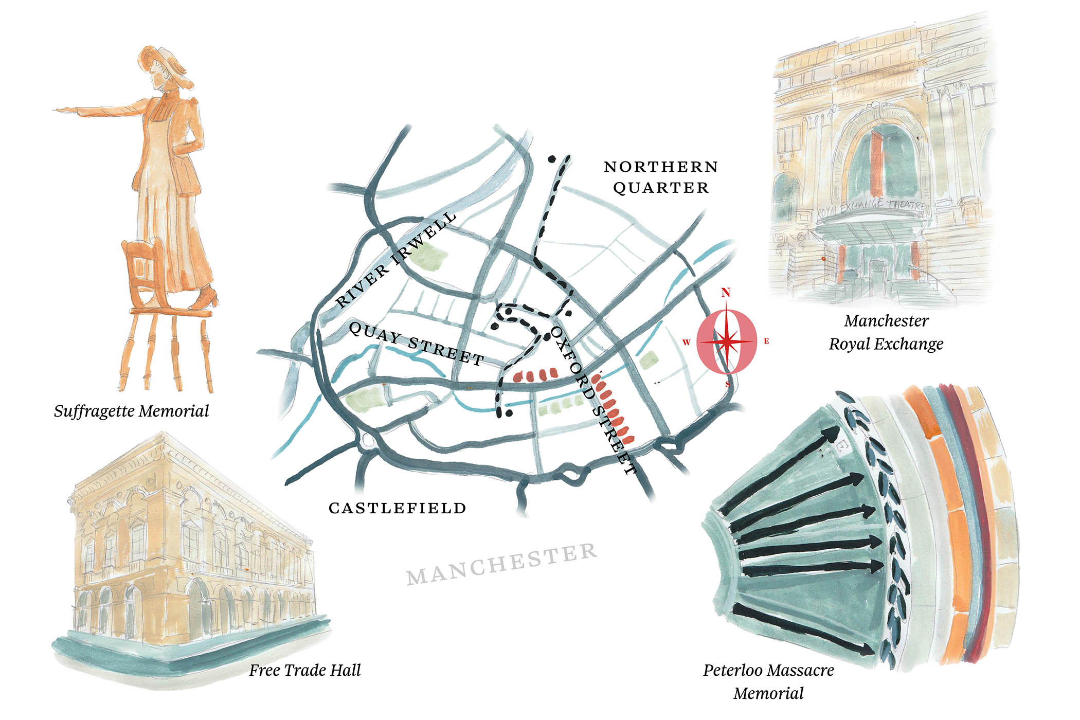 We dodge the trams and arrive at the statue of Emmeline Pankhurst, the suffragette who was born in Manchester. The slogan “deeds not words” is etched into the stone by her feet. Powell says female politicians do things differently. “Women are more open to different ideas, more consultative, more collaborative about the way in which we work and the way in which we do politics, more empathetic. So having more women around is certainly a benefit to politics and society.”
