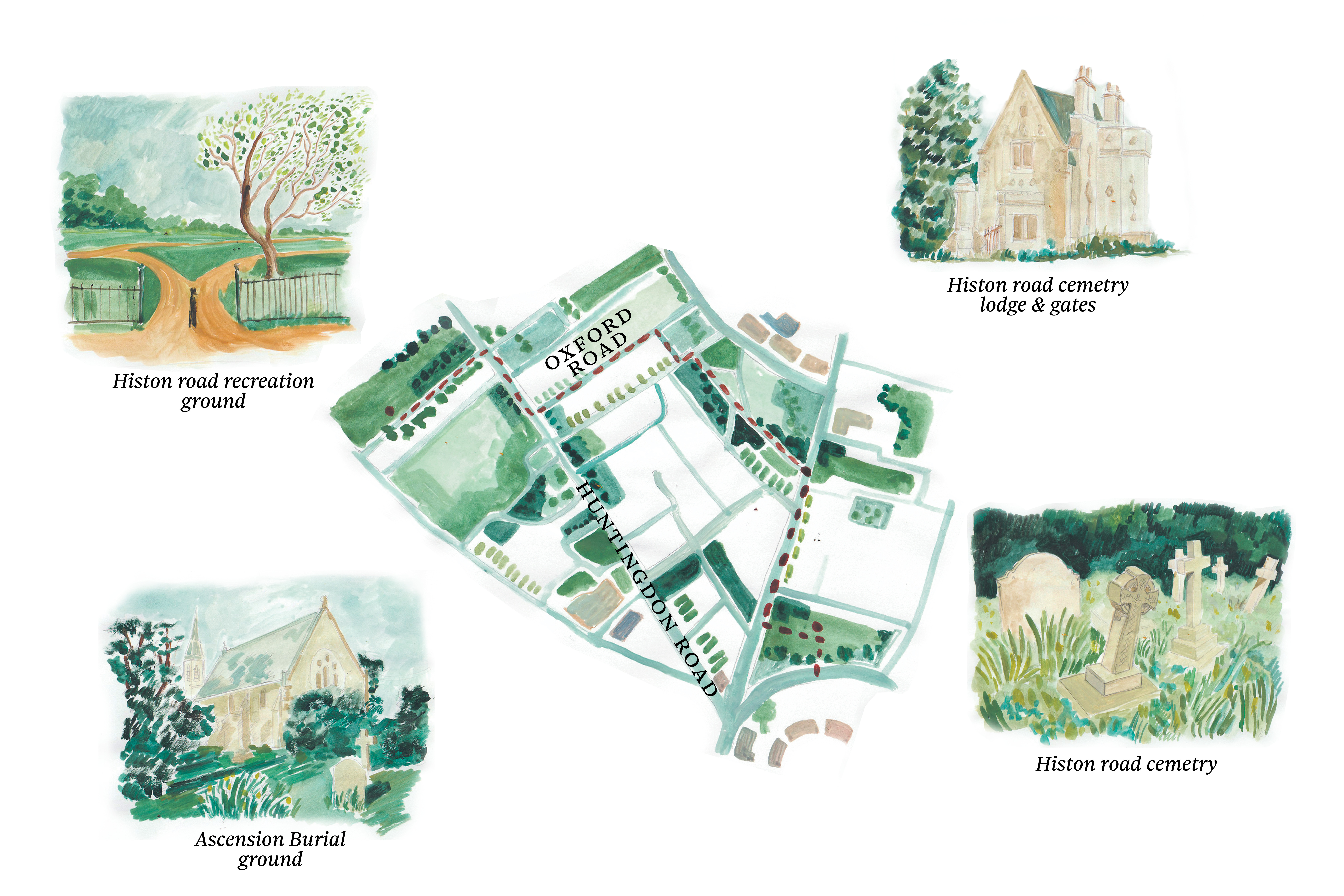 We meet outside the Histon Road cemetery on the outskirts of Cambridge. Our walk will take us between two graveyards, which somehow seems appropriate. “They are about nostalgia and remembrance, and a total leveller because that’s where we’re all going to be one day,” Beard says. “But they are also places where the past meets the present.”