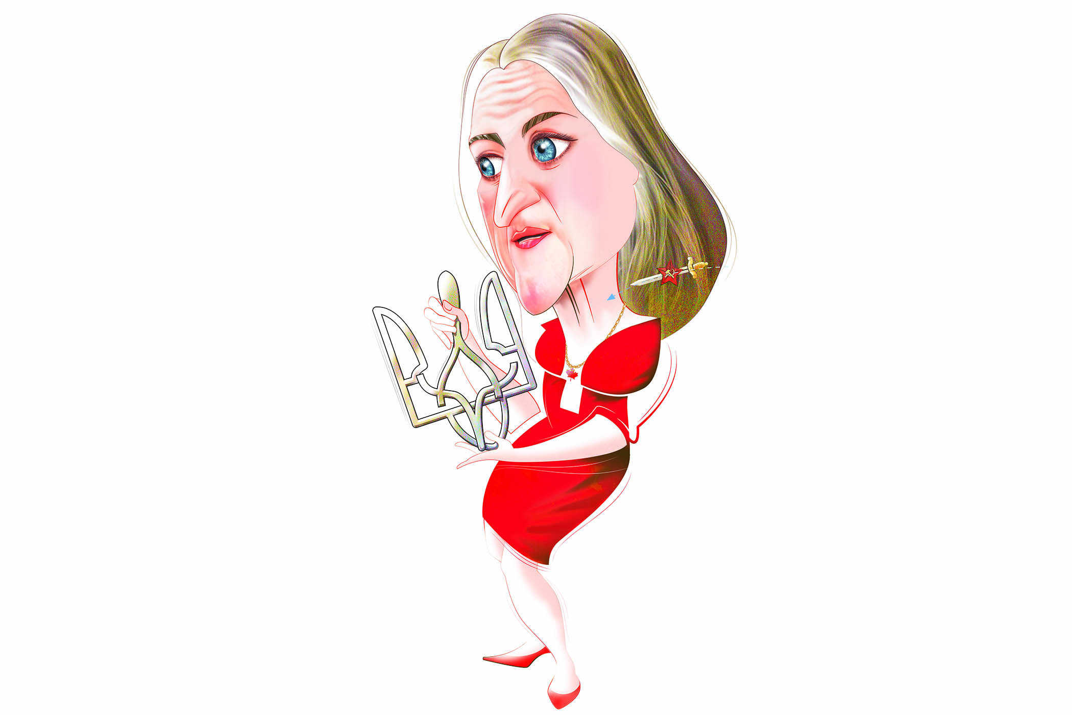 In 1998 an article appeared in Pravda Ukrainy, the mouthpiece of the Ukrainian communist party, under the headline “Red Handed”. It detailed the activities of a young Canadian exchange student in Kyiv, Chrystia Freeland, accusing her of colluding with western intelligence agencies and local agitators.