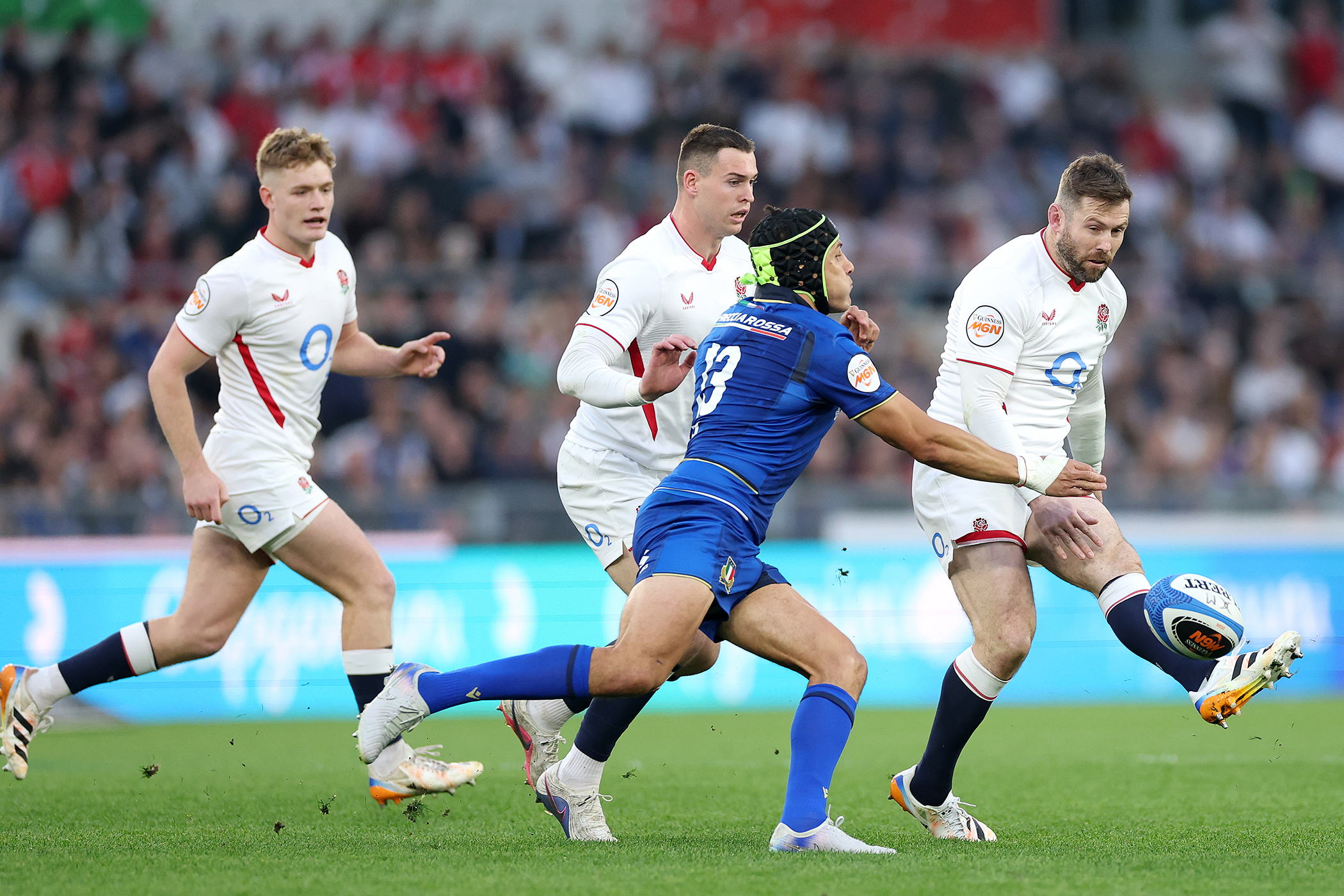 Sounds great, doesn’t it? Except when watching the game against Italy live in Rome and then back again on the flight home, you could see countless moments where England didn’t throw that pass. Elliot Daly, the England full-back, said afterwards that England had targeted “edge kicking, putting the ball in behind”. Watching Seb Atkinson, a threatening runner and good passer for Gloucester, forcing a kick in behind in the second half when England had space on the outside was particularly glaring. That is not Atkinson at his best. Not the Atkinson who impressed in Argentina in the summer. The fact that Cadan Murley, the England wing, can be seen calling for the kick behind reiterated that it was a pre-planned tactic. Not exactly free will to move the ball around.