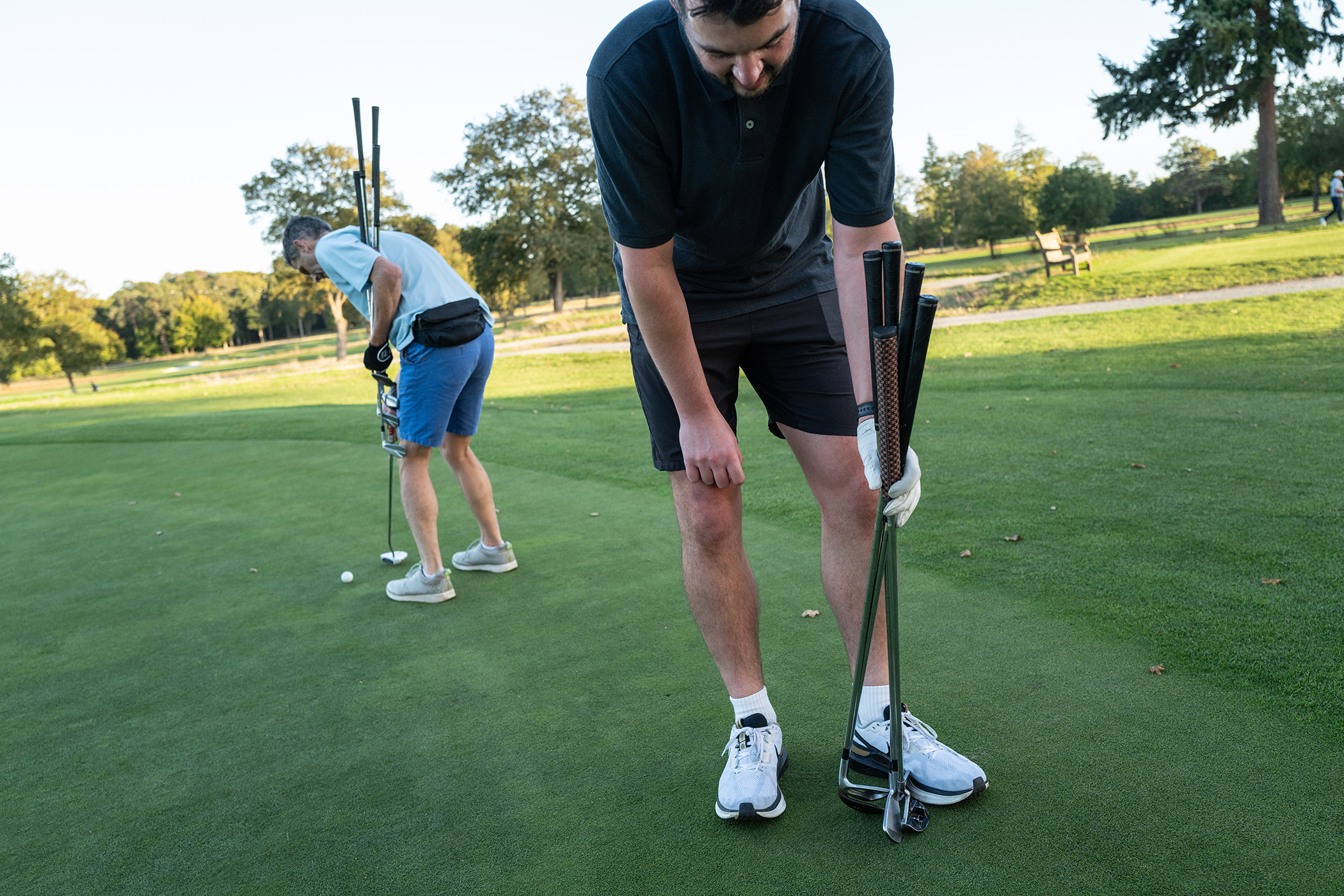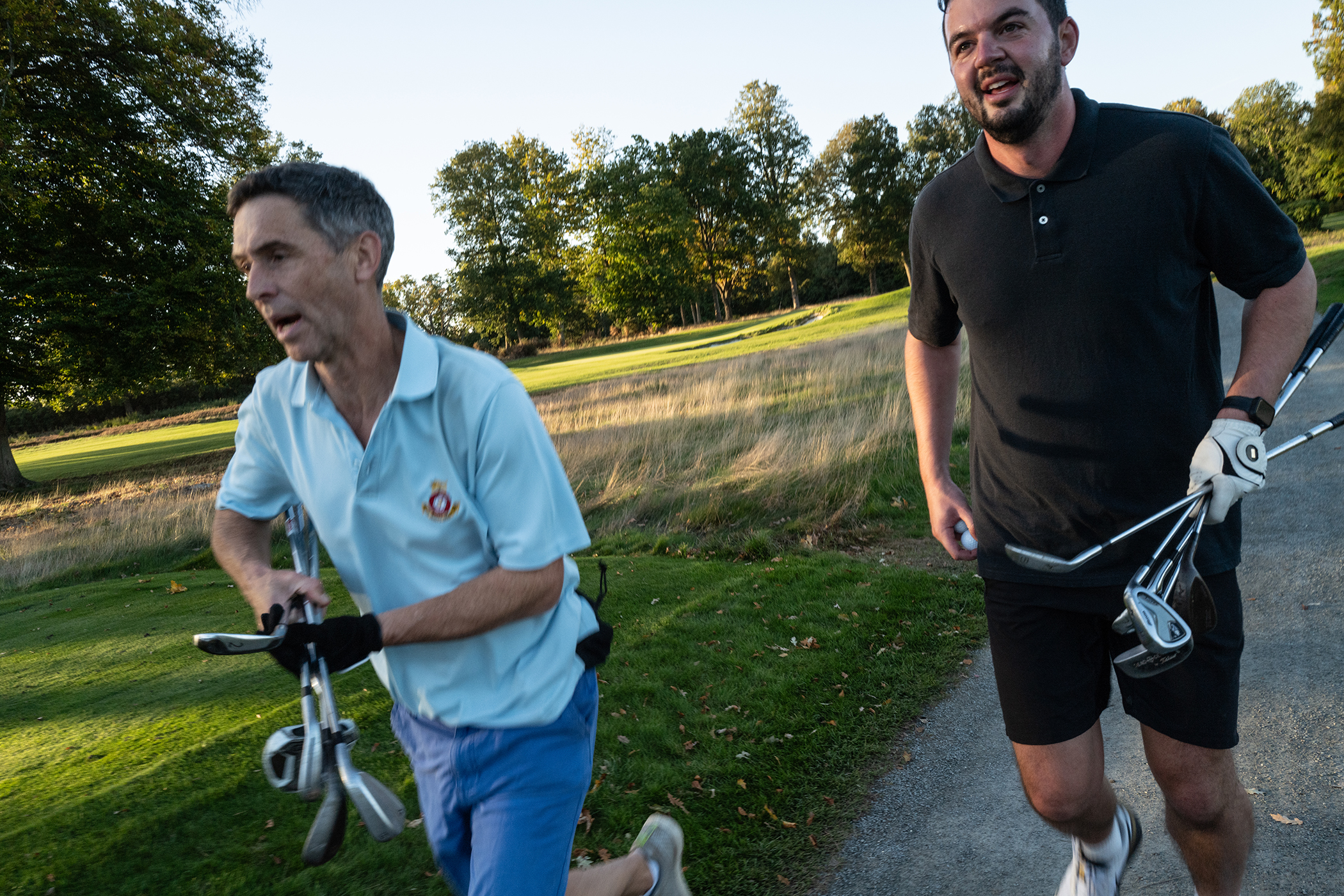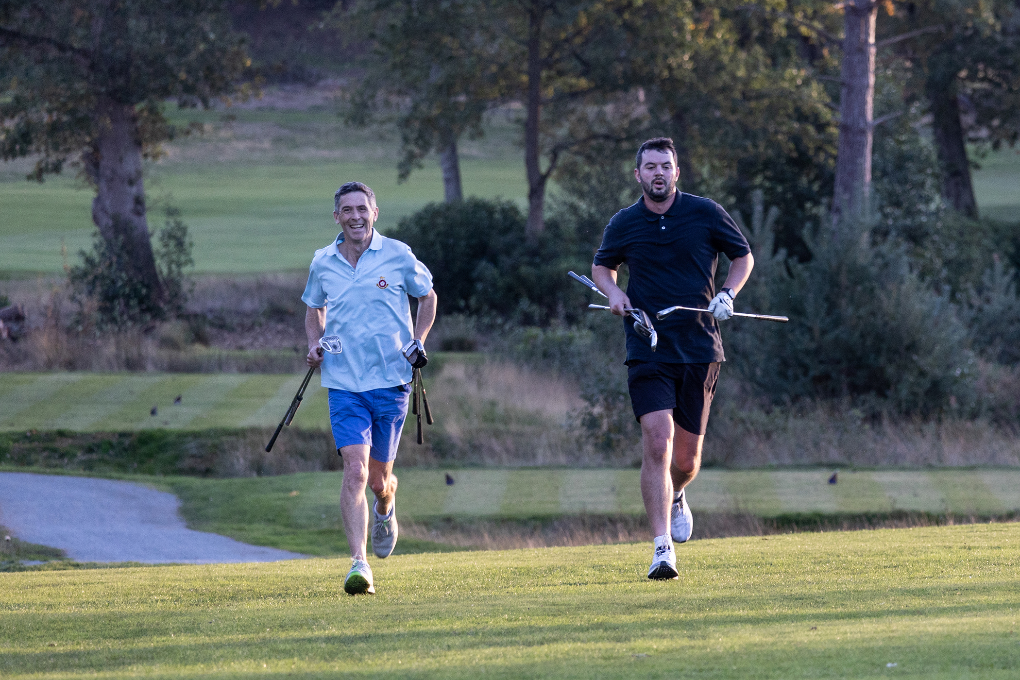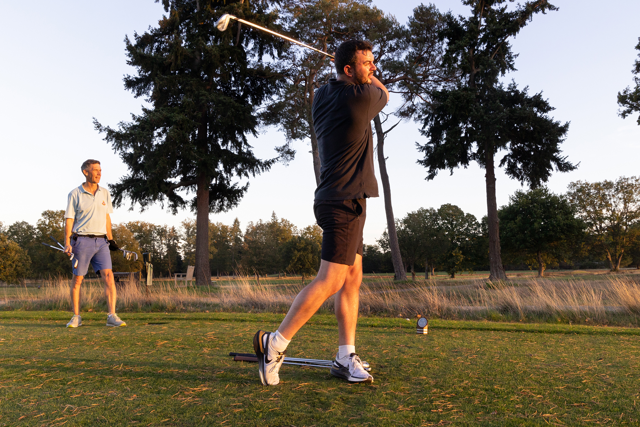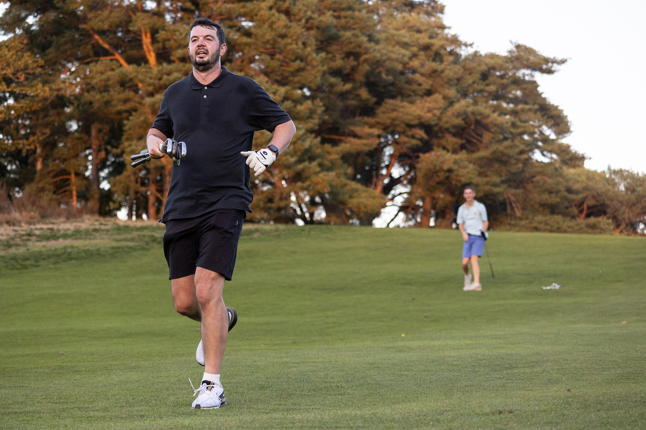 So here we were, on the first tee at North Hants Golf Club, on a glorious autumnal afternoon, with nine holes and four kilometres of running in front of me with a target time of half an hour – armed with just five clubs I’d elected to take out with me – my five, seven, and nine irons, a 52-degree wedge and putter.