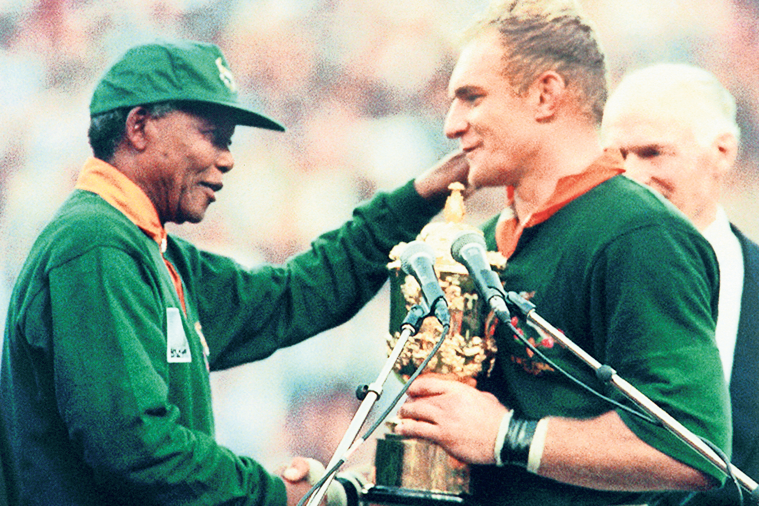 On 24 June 1995, Mandela appeared before a 95% Afrikaner crowd as South Africa faced New Zealand in the Rugby World Cup final. He wore the No 6 jersey of the Springbok captain Francois Pienaar, who Mandela had co-opted into the job of uniting black and white post-apartheid. It remains the No 1 example of sport finding a higher purpose.
