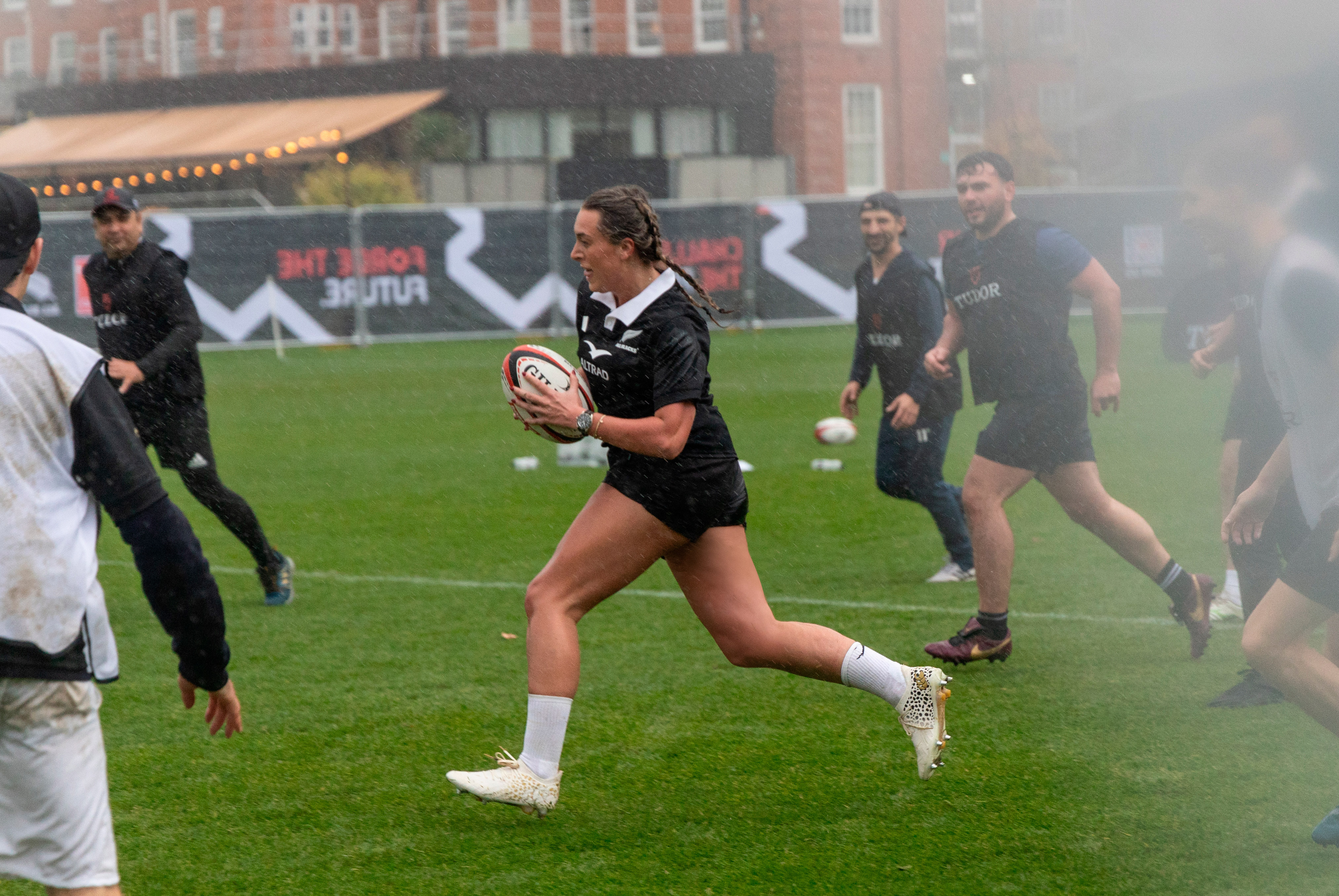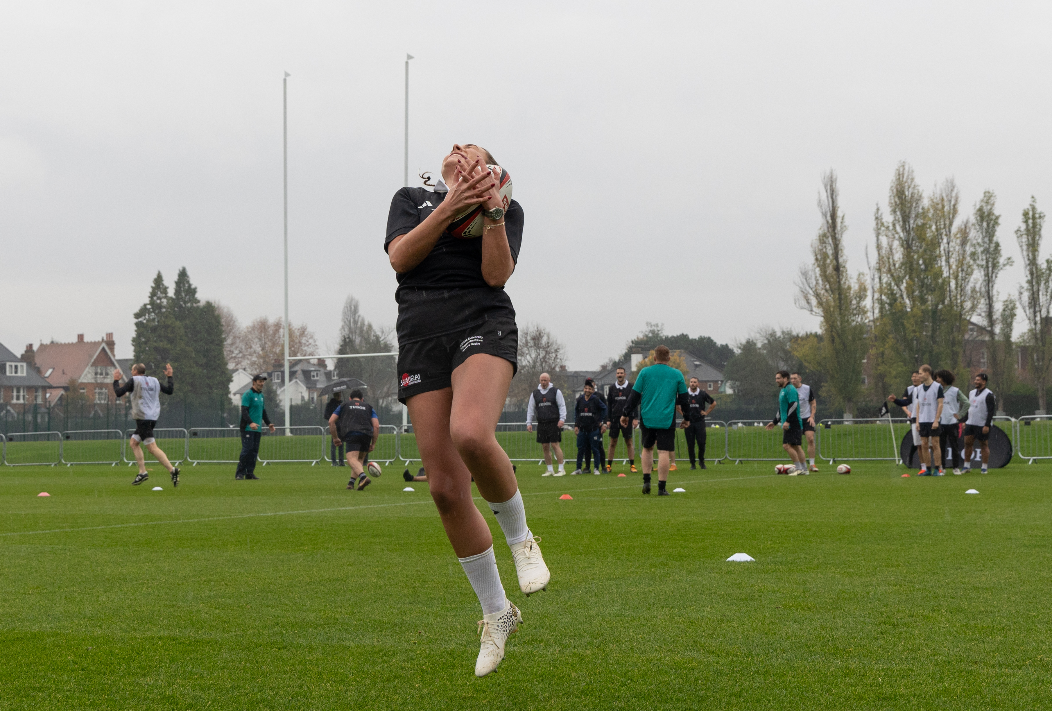 Now, in an attempt to not completely write off my own abilities: I played rugby to a half-decent standard for five years, but stopped in 2019. So I knew what I was meant to do, but less sure my arms would remember. Carter sent towering kicks into the grey, rain-heavy sky, each one disappearing briefly into the clouds before plummeting back toward earth. To my surprise – and, judging by their expressions, to the surprise of all three players – I actually excelled at this. I caught all but one cleanly, despite the rain stinging my face and having lost a contact lens in the mud, and the ball spinning like a rogue satellite. “Nice,” Newell said, and I believe he meant it. It was a fleeting but sincere moment of pride, and it gave me the confidence for what happened next.