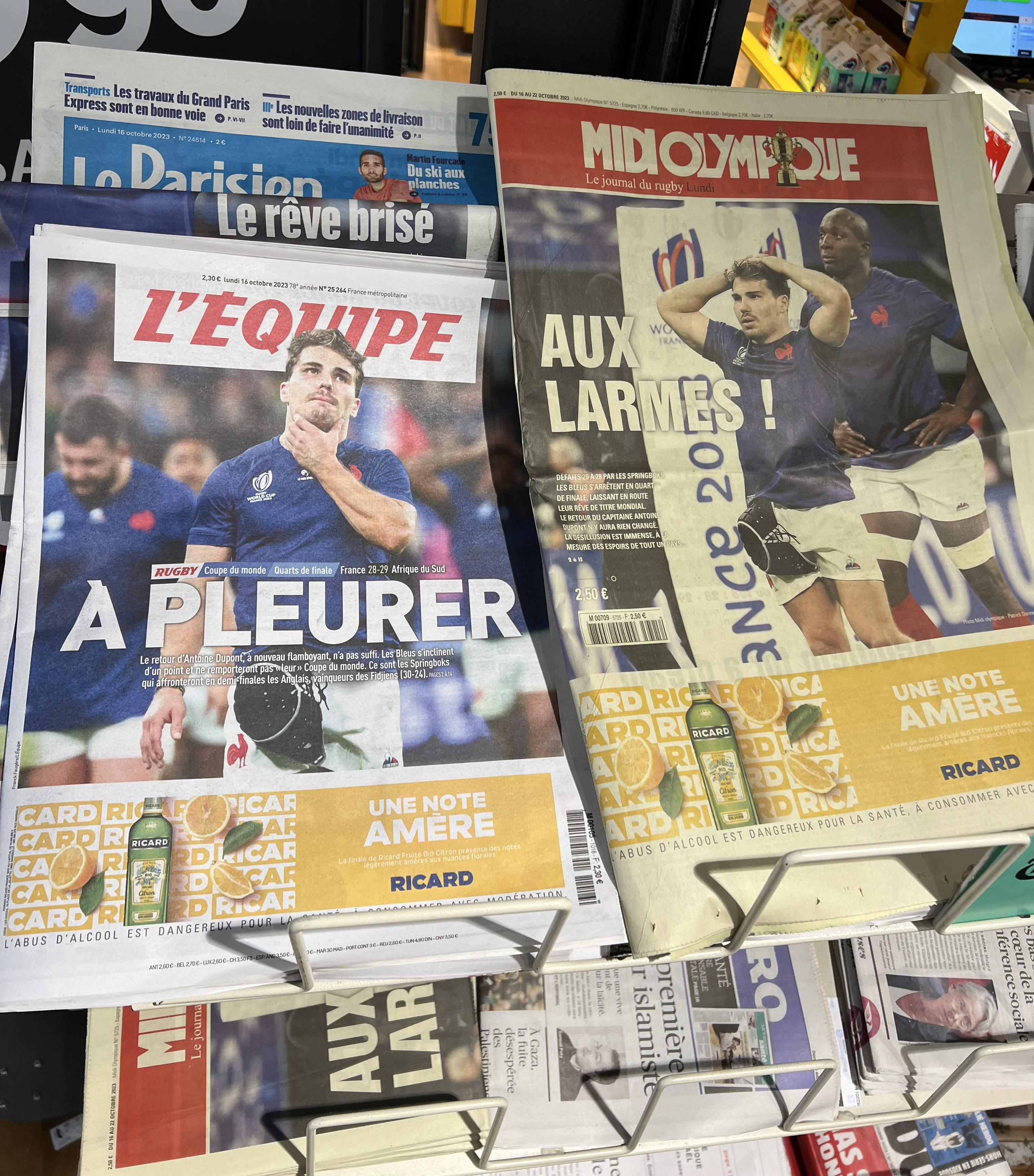 Picture the scene. It’s an autumnal Monday in Paris, the morning after a national nightmare at the Stade de France. The copies of the daily sports newspaper, L’Equipe, stacked on newsstands at Métro stations and laid out across the tables at cafés, all bearing the same apocalyptic front page: ‘A Pleurer’. To cry. Collective disbelief that France, the host nation, had been knocked out of their own tournament by the slimmest of margins, a 28-29 defeat against South Africa.