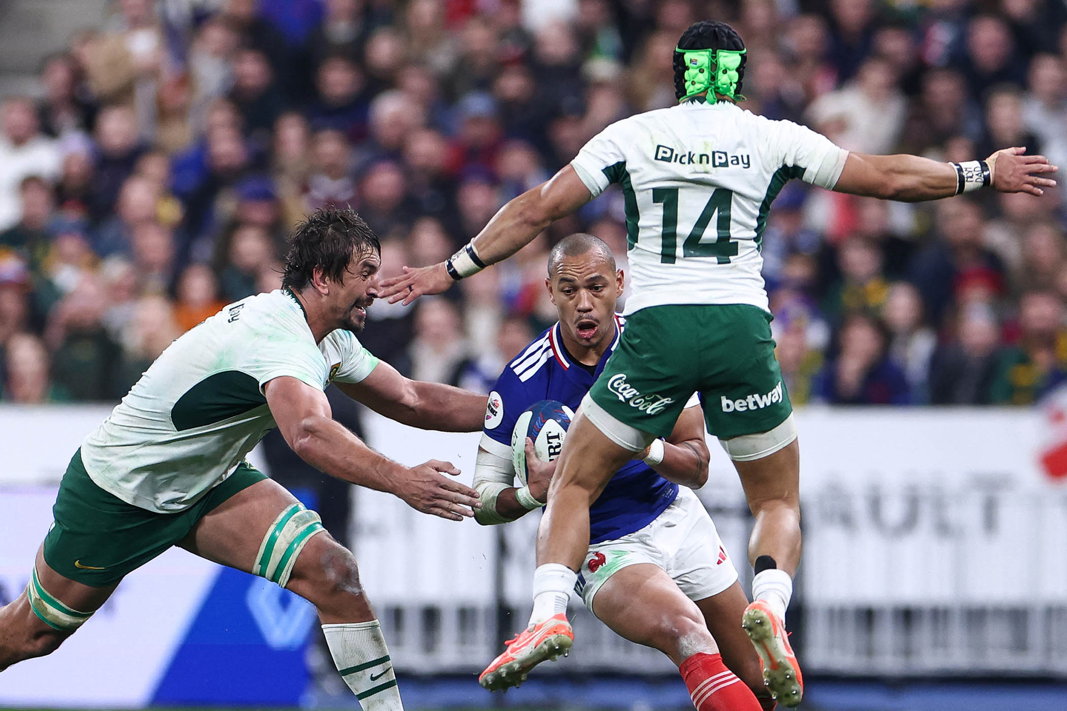 Two years ago, in the same stadium, South Africa displayed a masterclass in composure, improbably winning three knockout games in a row by a single point to claim their second consecutive World Cup. So, losing their second-row Lood de Jager to a first-half red card – a rare straight red card no less, not the new 20-minute version, for a hit on Thomas Ramos – and the prospect of finding a way to win in the Parisian furnace while a player down? No problem. Seven of the starting backline on Saturday night were back from the one-point win over France two years ago. The odd man out, Feinberg-Mngomezulu, fittingly scored the final try to finish things off.