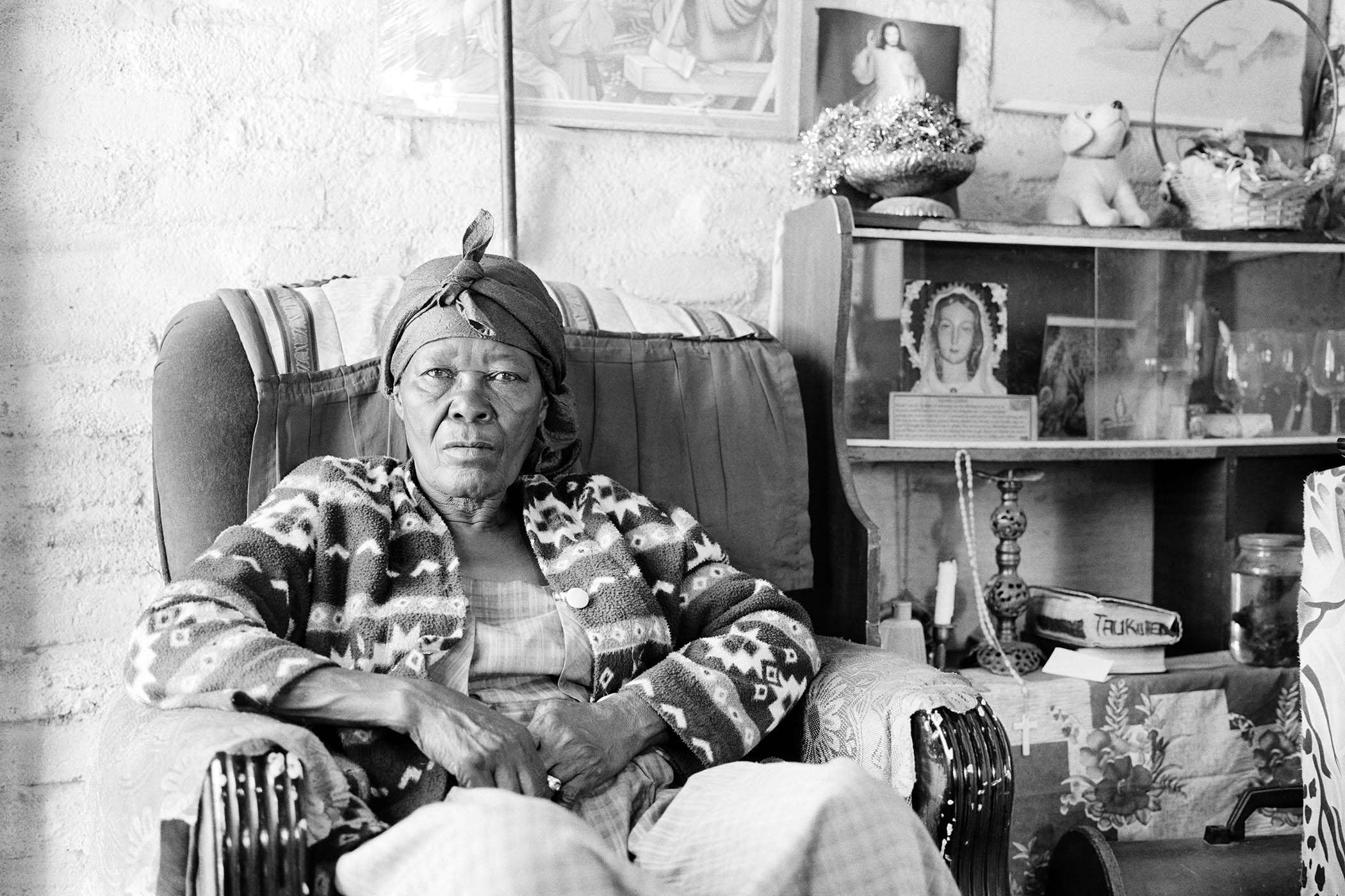 Taukuheke, in her seventies at the time, was living alone in a two-room house filled with Catholic iconography. She had grown up in Riemvasmaak, but in 1974 had been evicted by the apartheid government and sent into exile. She was one of 3.5 million black South Africans forced out of their homes between 1960 and 1983 as a result of segregation policies, many of them sent to “tribal homelands” known as bantustans. Taukuheke and her brother were sent to live in northern Namibia, where they had no family connections.