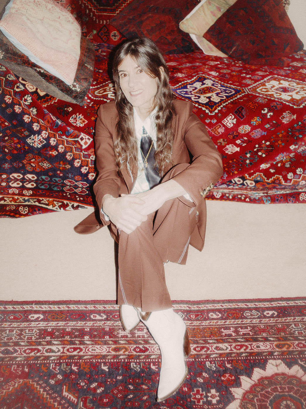 Bella Freud, known first for her tailoring and more recently for her podcast, has a voice like corduroy and a silken life that, at times, has appeared unravelled. We meet on a cold morning in November at her great-grandfather’s house in north London – a museum now and a place of pilgrimage for many, including hushed groups of tourists who today pose for photos on a replica of Sigmund’s psychoanalytic couch. It is somewhere Bella rarely visits, partly due to the sense that she mustn’t get “seduced” by a dynastic family she was not brought up with, and the enduring feeling instead that “I’ve got to prove myself.” She whispers, embarrassed, as we walk up the carpeted stairs, past cuttings from Sigmund’s begonia, and into a private office lined with books.