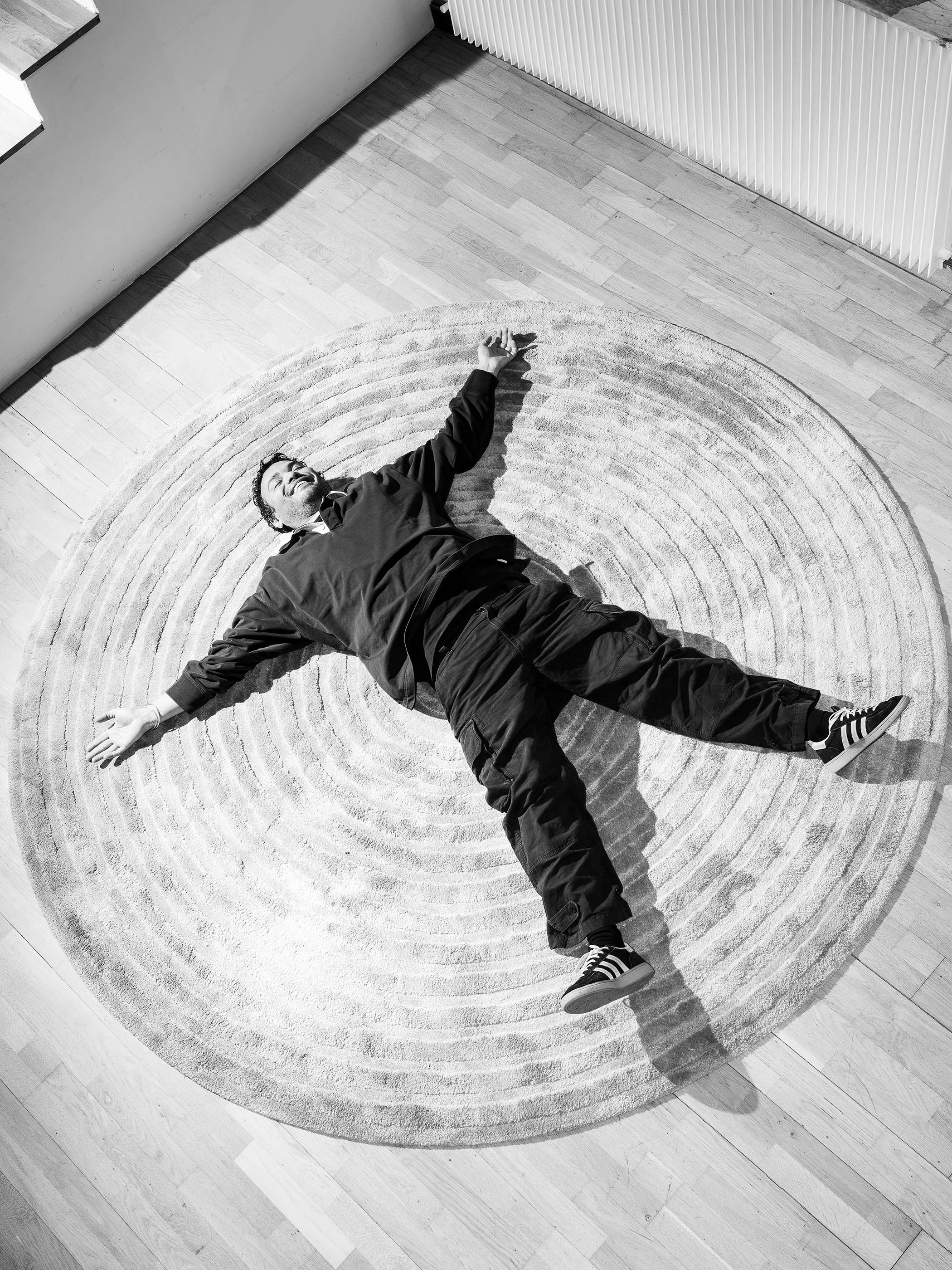 Lantink’s home is the largest single-occupancy building on his street. When I visited, the exterior appeared grimy and unloved, a long-dead climbing vine still somehow clinging to the brick wall. But inside was an oasis of sleek lines, chic fittings and open spaces. My first sight of Lantink came from the home’s doorway. Down several steps into an enormous kitchen-cum-living-cum-dining room he was sitting alone on a big grey sofa, smoking a cigarette, totally still.