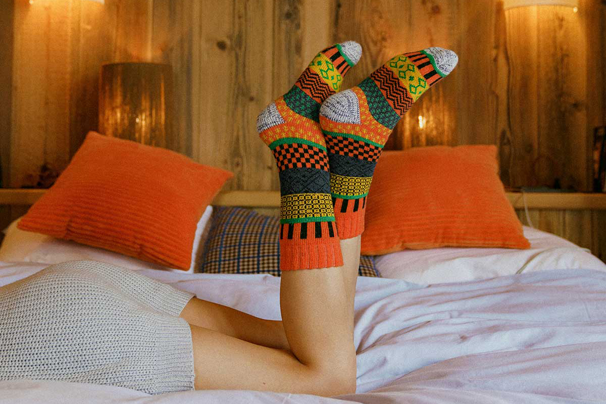 The cosy sock trend is all about warmth, and style. Choose from chunky knits in plush materials, like merino, alpaca and fleece to fun patterns from argyle, and novelty, bold colours. Select a style, whether it's a slouchy knee-high or calf snuggling length, these are the perfect sofa accessory.