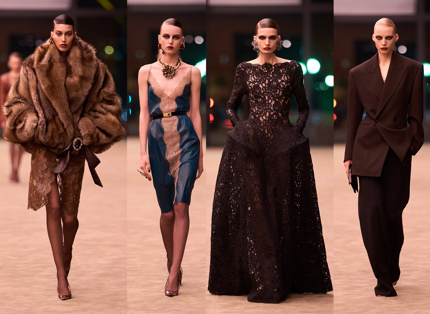 Creative director Anthony Vaccarello’s AW26 collection paid tribute to the iconic Le Smoking suit, first debuted by Yves Saint Laurent 60 years ago. Saint Laurent is the hot ticket of Paris fashion week, this season saw Michelle Pfeiffer, Zoe Kravitz and Kate Moss seated in the front row. The show opened with eight exquisitely tailored versions of the tuxedo suit. The hair and make-up were reminiscent of Helmut Newton's famous 1975 image for French Vogue, which featured model Vibeke Knudsen, wearing Le Smoking, standing on a dimly lit Paris street with a crisp white cravat, cigarette and black stilettos. The second chapter introduced lingerie – sheer slips, bodies, camisoles and lace dresses that appeared light and delicate; however, on closer inspection, they revealed silicone coating. Some were constructed with delicate corseted boning, while others were worn with oversized faux fur-trimmed, drop-waisted coats cocooning the body. Statement jewellery was ever-present, featuring bird-shaped and oversized jellied earrings and exaggerated pointed stilettos. If Newton were alive we think he would approve of Vaccarello’s vision of Parisian glamour.