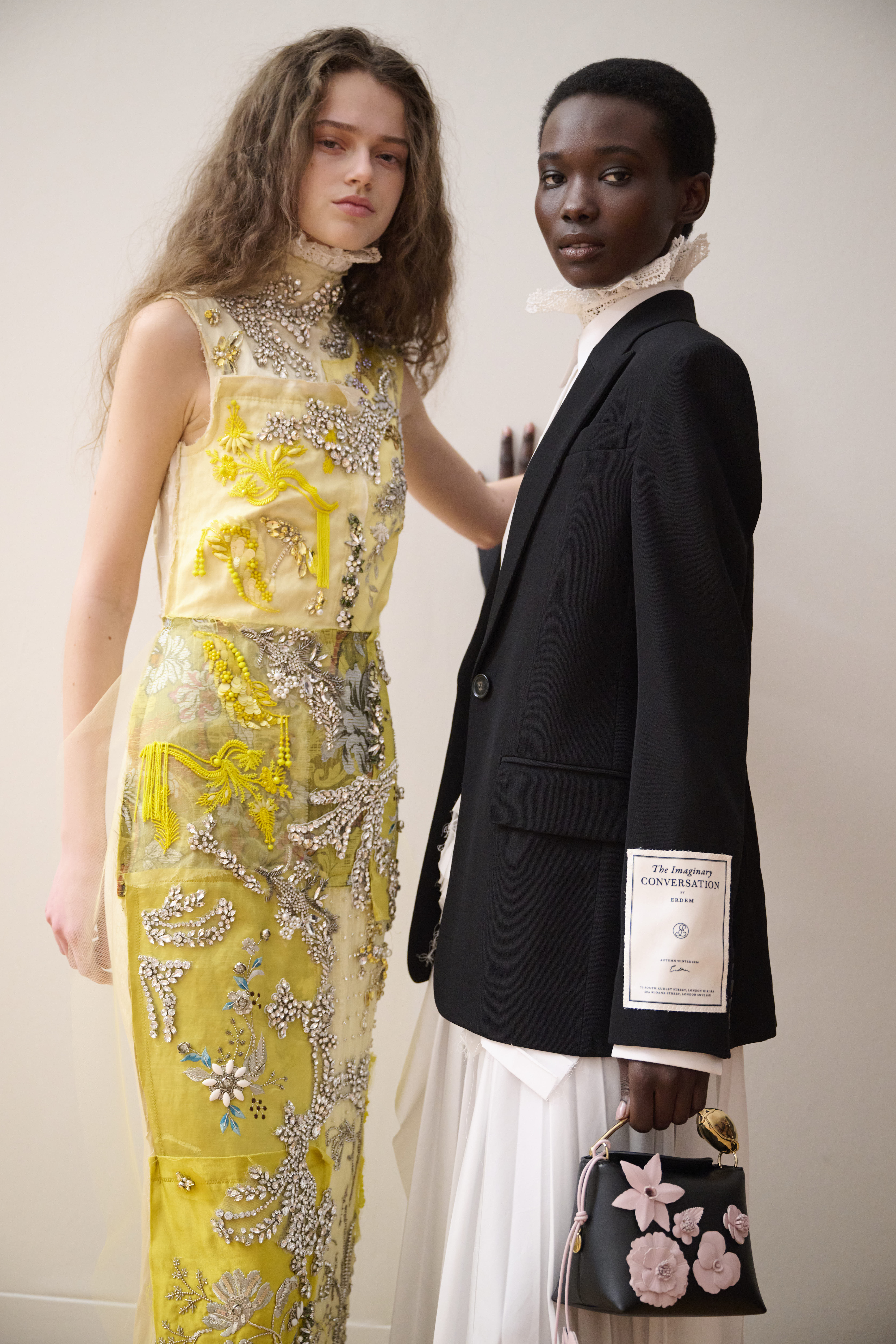 Erdem Moralıoğlu decamped from his regular venue at the British Museum to Tate Britain for his Erdem 20th anniversary show, The Imaginary Conversation. Celebrity fans including Helen Mirren, Keira Knightley and Glenn Close, and designer pals Christopher Kane and Roksanda Ilincic, all turned out to celebrate the independent London house's unique brand of magical romanticism with an edge. The collection recalled many of Erdem’s greatest hits and included a reworked wedding dress from his first show, alongside two one-of-a-kind Barbour showpieces that nodded to his SS25 collection, referencing “Debo”, the Duchess of Devonshire. Moralıoğlu explained via a letter left on guest’s seats that his inspiration has always been “a continuous exchange… with women whose lives and legacies resonate across time and beyond borders.” Past inspirations have come from a wide range of women, from opera singer Maria Callas o poet Radclyffe Hall. Standout pieces included a high-neck canary yellow patchworked sleeveless fitted dress with crystal embellishments worn with yellow feather shoes, and a cropped pink satin top with floor sweeping red bows, worn with jeans and a long-sleeve ballerina skirted red lace dress, modelled by Edie Campbell.