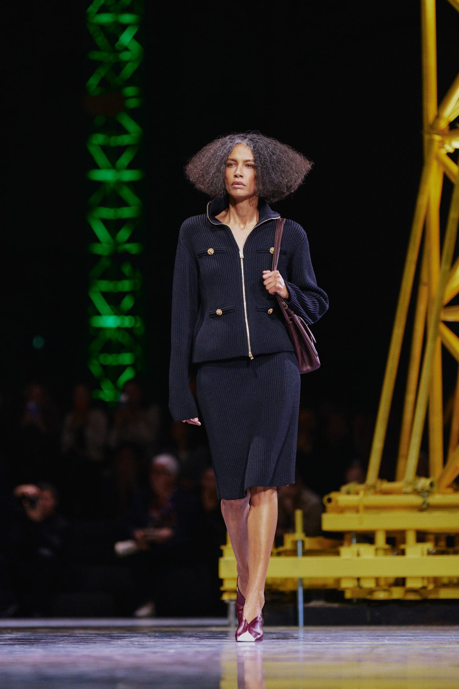 The iconic Chanel skirt suit was Blazy's tool of choice this season. The opening look, worn by 50-year-old Italian model Stephanie Cavalli, was a ribbed-knit zip-up take on a Chanel jacket with a matching pencil skirt, designed for movement and function. The suit served as the central canvas to the collection, presented in classic tweeds but reworked using intricate fabrics, including a gauzy style splattered with silicone that was inspired by a Jackson Pollock painting. The casting of Cavalli signalled that Blazy's vision for Chanel is age-inclusive. “I wish to create a canvas for women to be unapologetically who they are and who they want to be,” he said in his notes. Celebrity guests and ambassadors at the show included Oprah, Kylie, Margot Robbie and Olivia Dean on the front row. In a full circle moment Blazy also extended an invitation to Claudie Haigneré, the first French woman in space in 1985, who inspired his graduate collection in 2006.