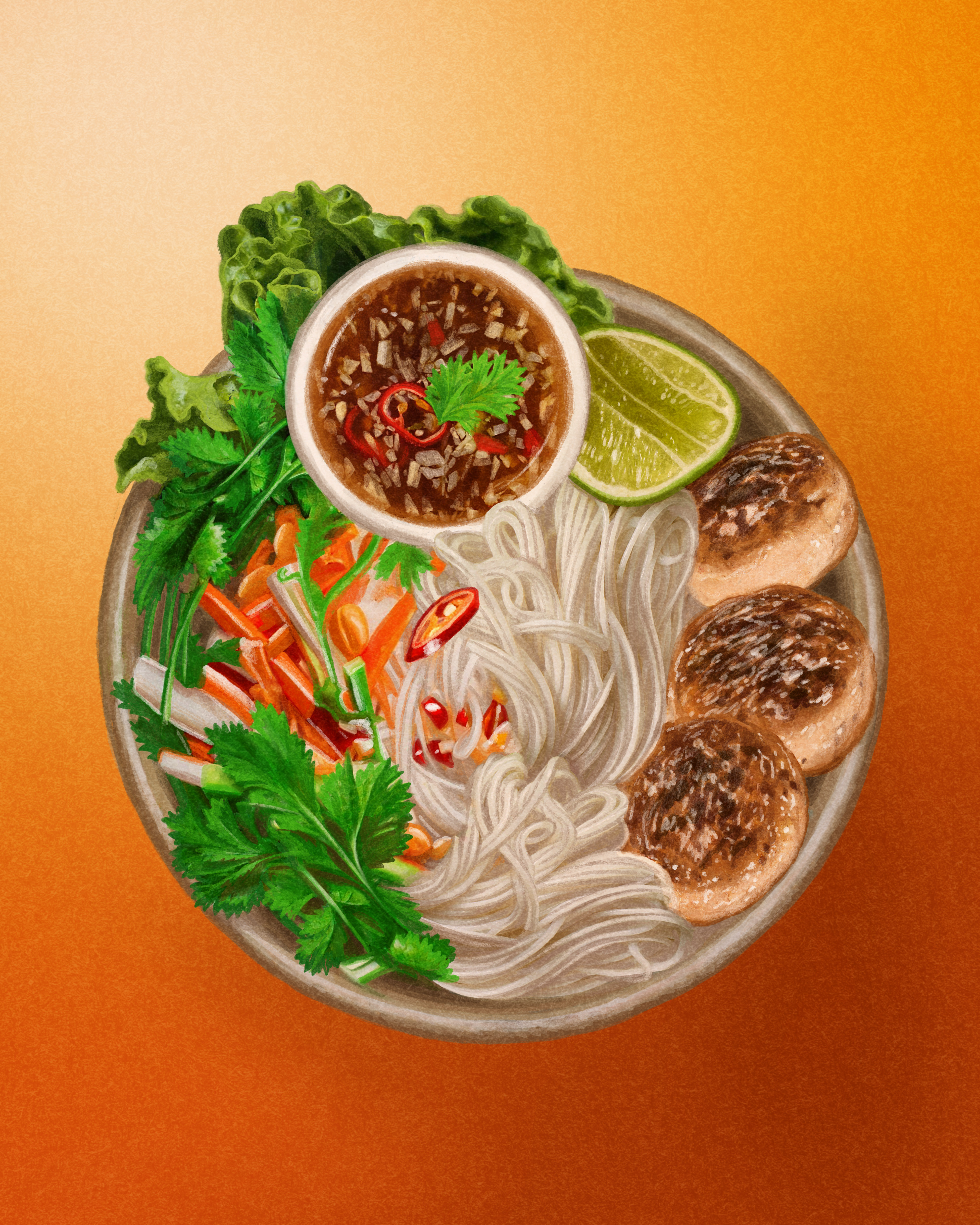 Think rice vermicelli, grilled pork and meatballs, broth, dipping sauce and plenty of herbs. This noodle salad (pictured above) from Hanoi gained international recognition when Anthony Bourdain sat down for a meal of it with Barack Obama in 2016.