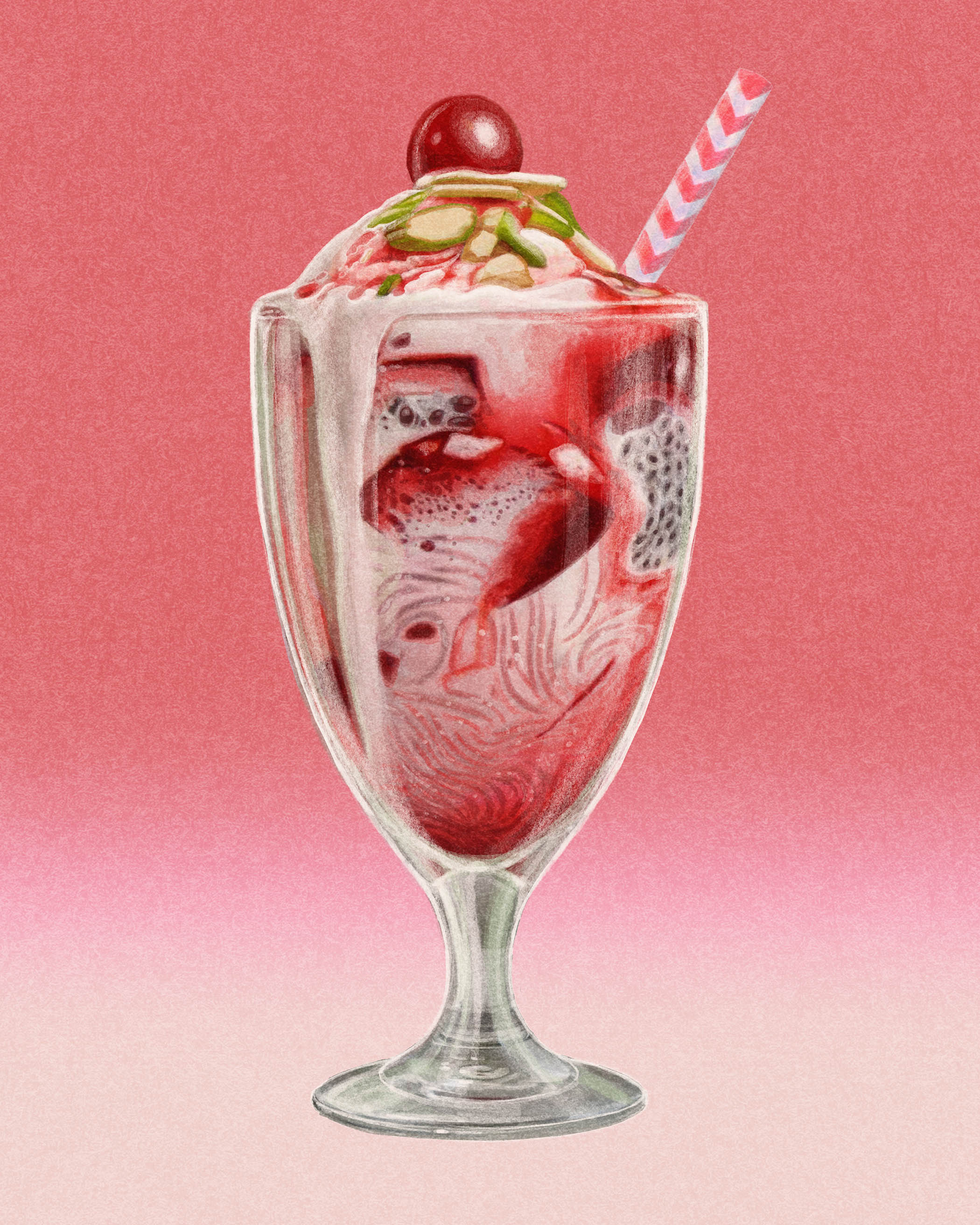 Iran, Burma, Pakistan and India all serve versions of this fragranced dessert (pictured above) in which vermicelli noodles, nuts, seeds, jelly cubes and thick fruit syrups are suspended in ice-cream or spiced milk.