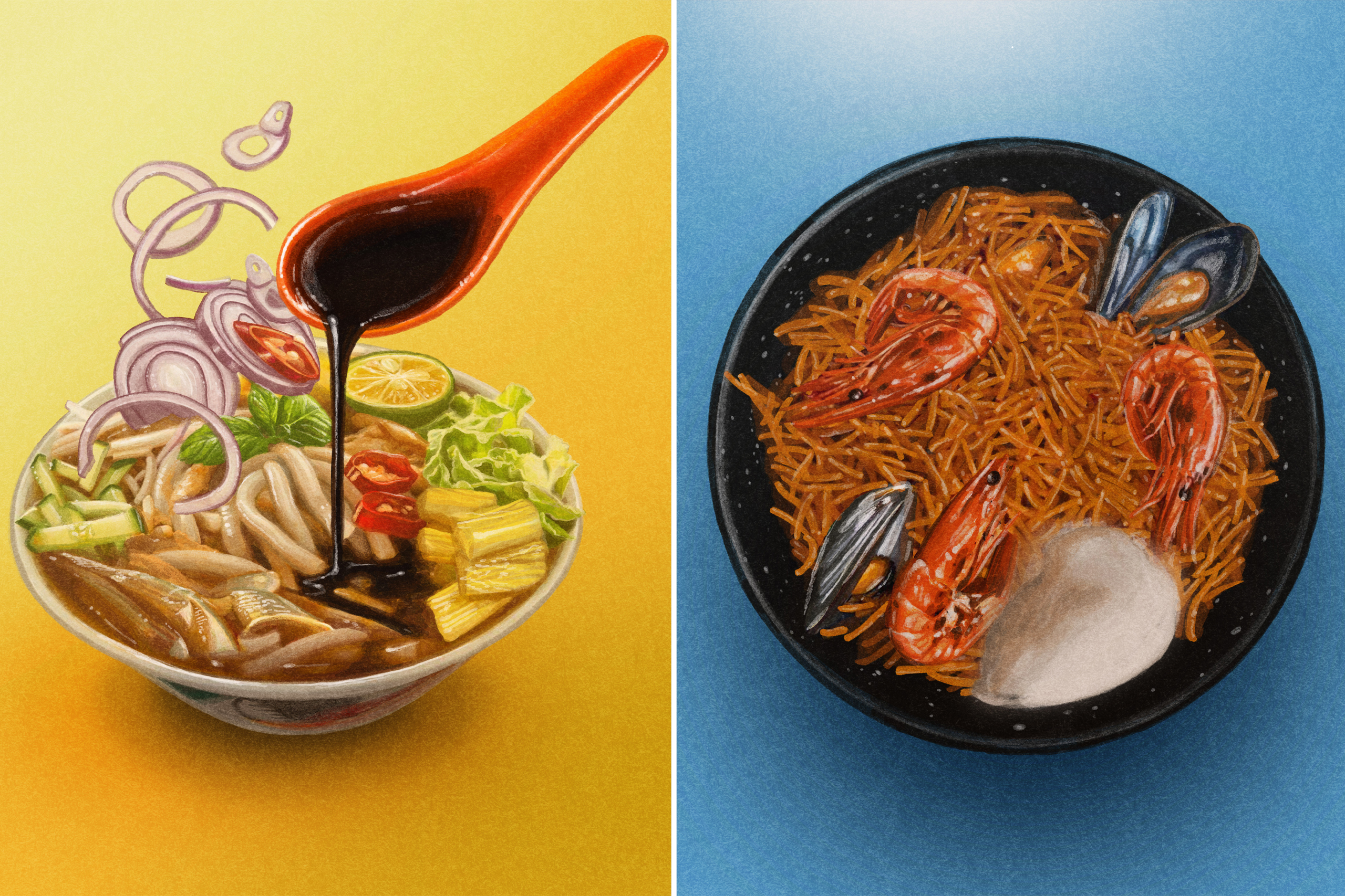 A popular dish sold by hawkers across the country and elsewhere. Wide, flat rice noodles are first stir-fried with prawns, pork and cabbage, and then tossed in a satiny egg gravy.