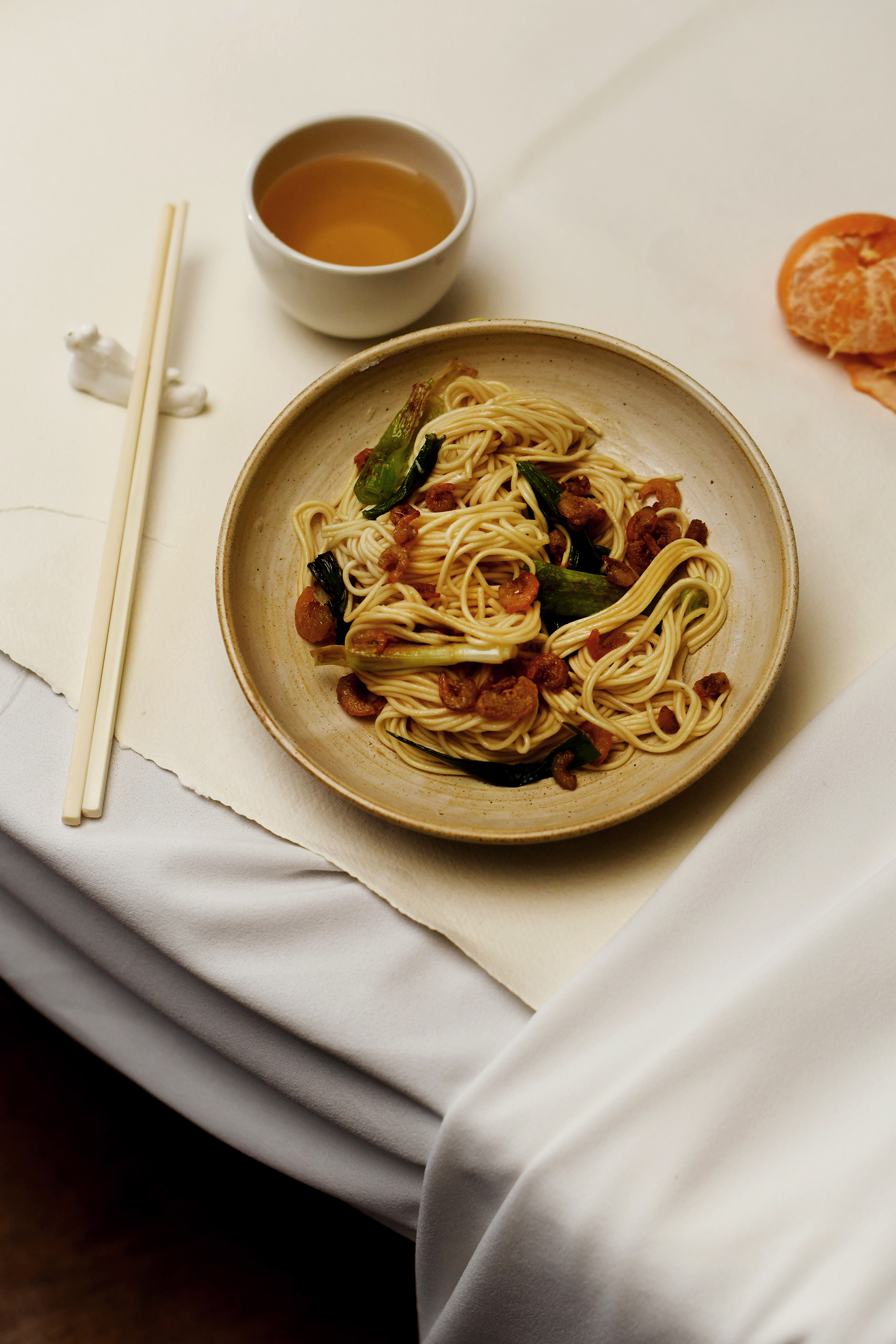Shanghai noodles with dried shrimp and spring onion oil