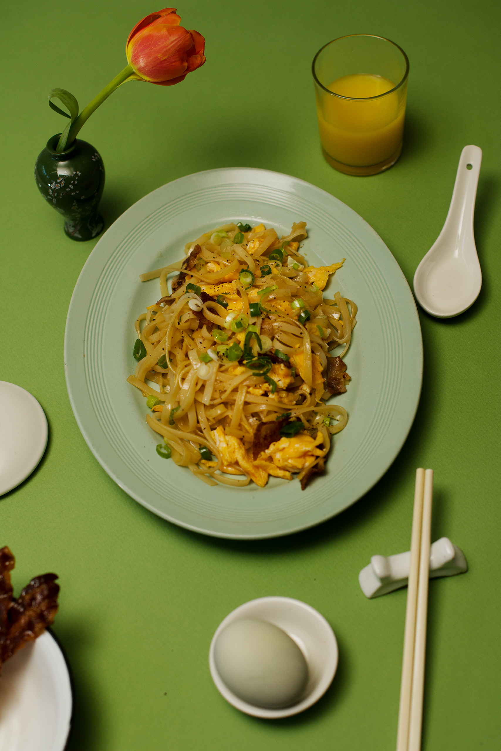 Bacon and egg fried rice noodles