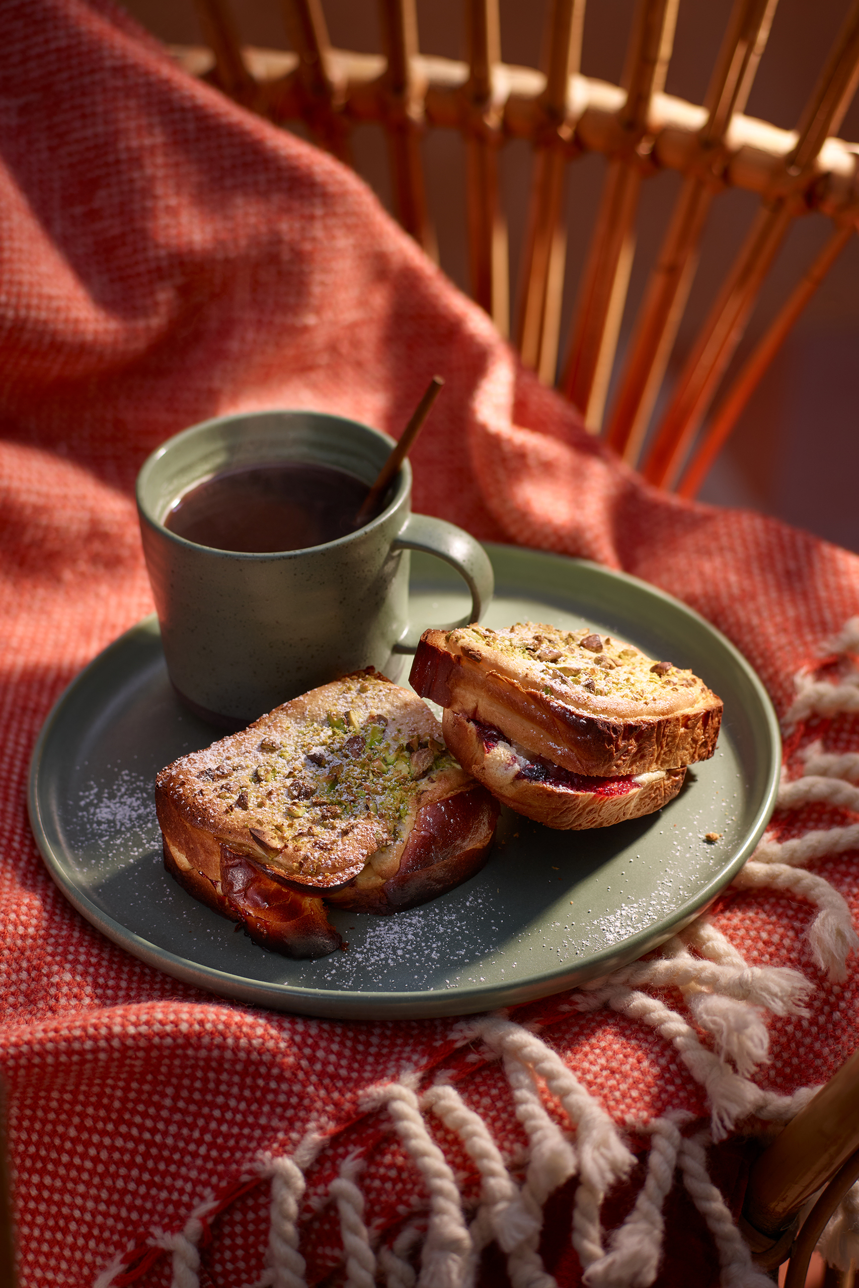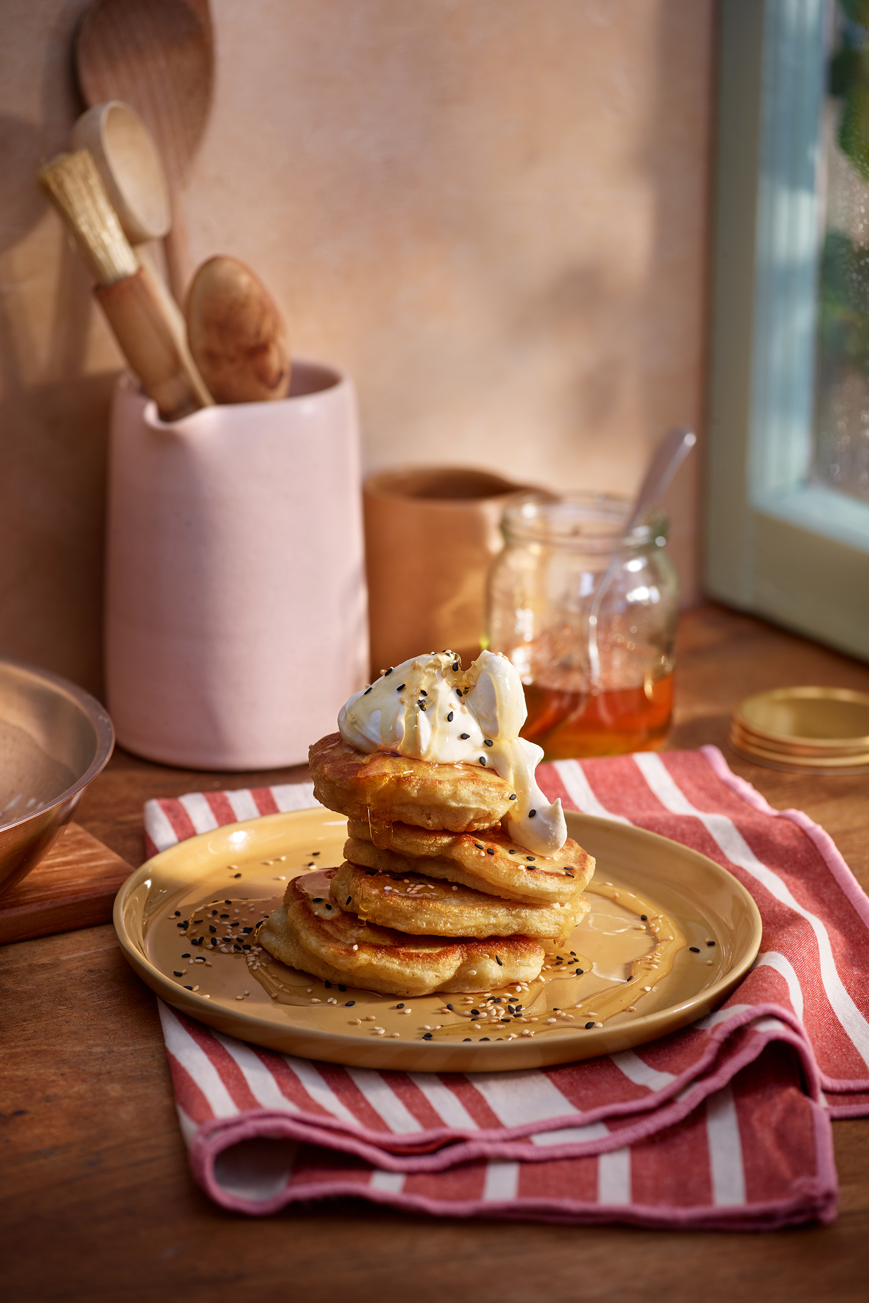 The first time I served atayef with tahini mousse for brunch, I was trying to impress my guests with something distinctly Middle Eastern after the Christmas period. I had spent an afternoon perfecting the little pancakes; as the recipe derives from Syria, it was important to get them right. They are soft, golden and a little thicker than a crepe. When I put them on the table, there was a joyful silence as our guests devoured the atayef with spoonfuls of tahini mousse. It was rewarding to see. This is a delicious alternative dish to have over Christmas – it’s sweet and decadent, and totally Middle Eastern.