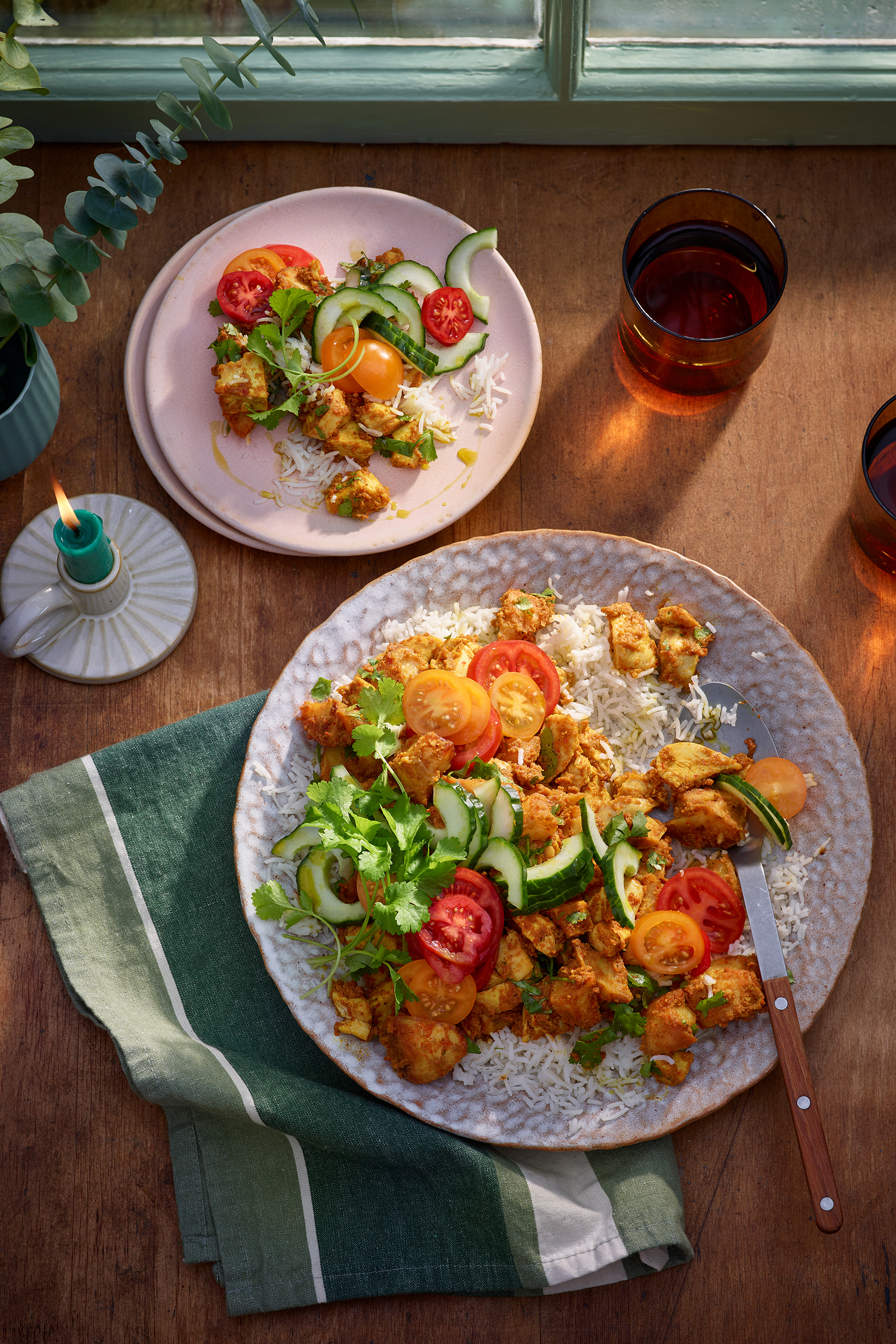 Think of this as a dry curried hash with a decent chilli kick to wake up your senses. Eat it with plenty of rice. Sliced cucumber and tomatoes are great with it, too.