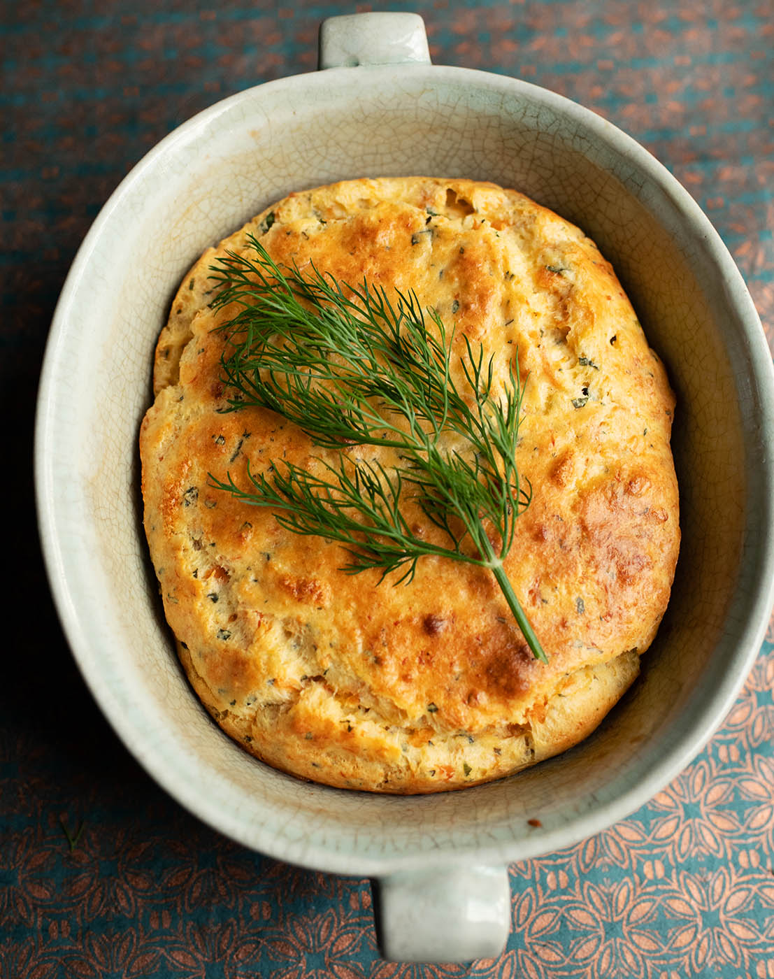 This creamy pudding is as light as a soufflé, but substantial enough to be a main dish. I like to catch it when the inside is still a little creamy, so I watch its progress carefully from 20 minutes onwards.