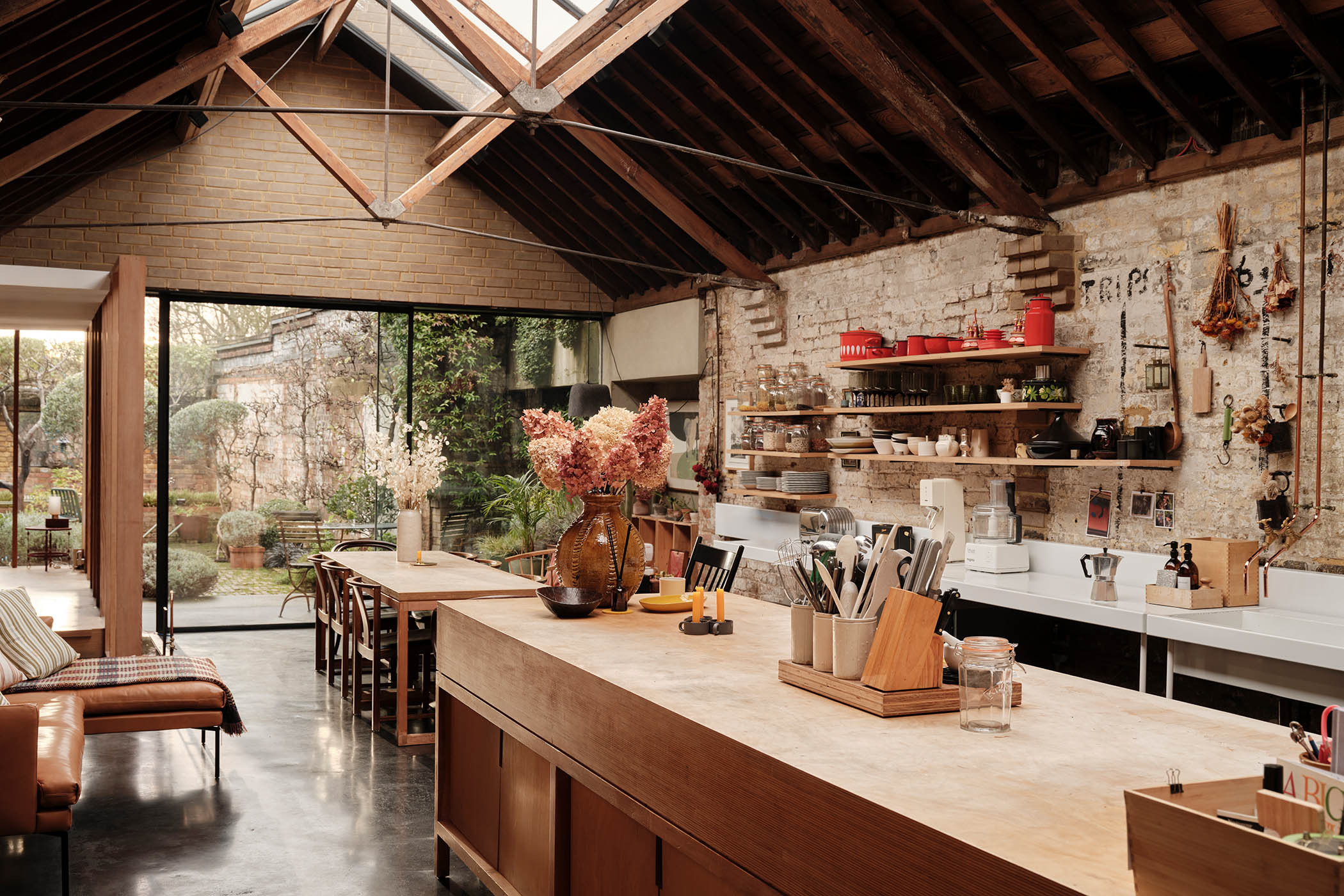 When they host dinners, Jakober and Vu use the long table underneath the portico that looks out on to the house’s internal courtyard. With its twinkling fountains, Islamic-inspired geometries and lush palms, it feels like something straight out of the Alhambra. There’s also a recessed area clad in terracotta. “We used this space like a theatre: people would sit in the pit and look at the action in front,” says Jakober, taking a fleeting glimpse back. “We had a great time,” says Vu. “But life moves on.”